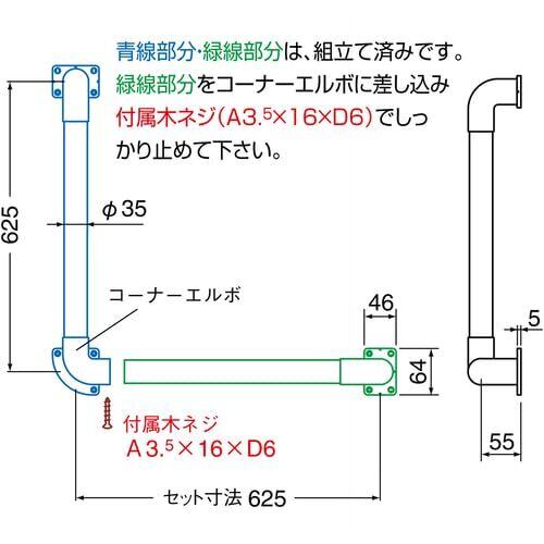 TRUSCO(トラスコ) L型 丸棒手すり 35φX600 シルバーライトオーク HBLR600-SO