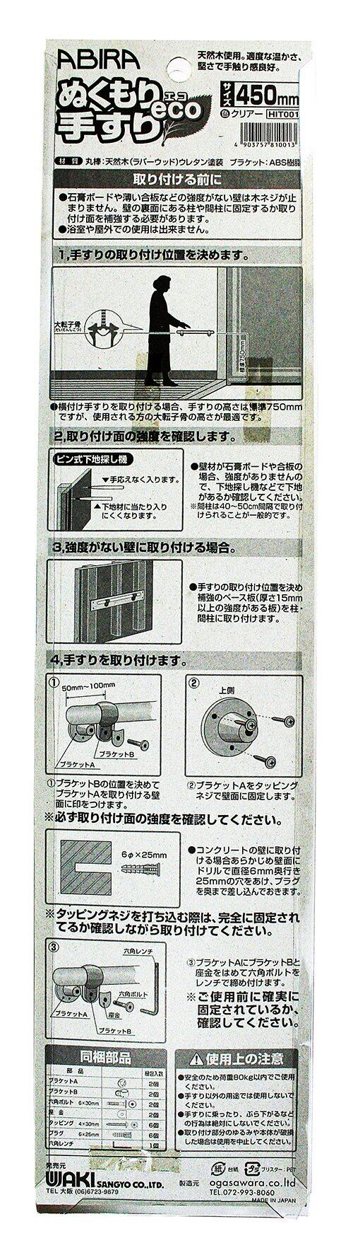 和気産業(Waki Sangyo) ABIRA ぬくもり手すりエコ eco クリアー 太さ32X長さ450mm 1セット入り