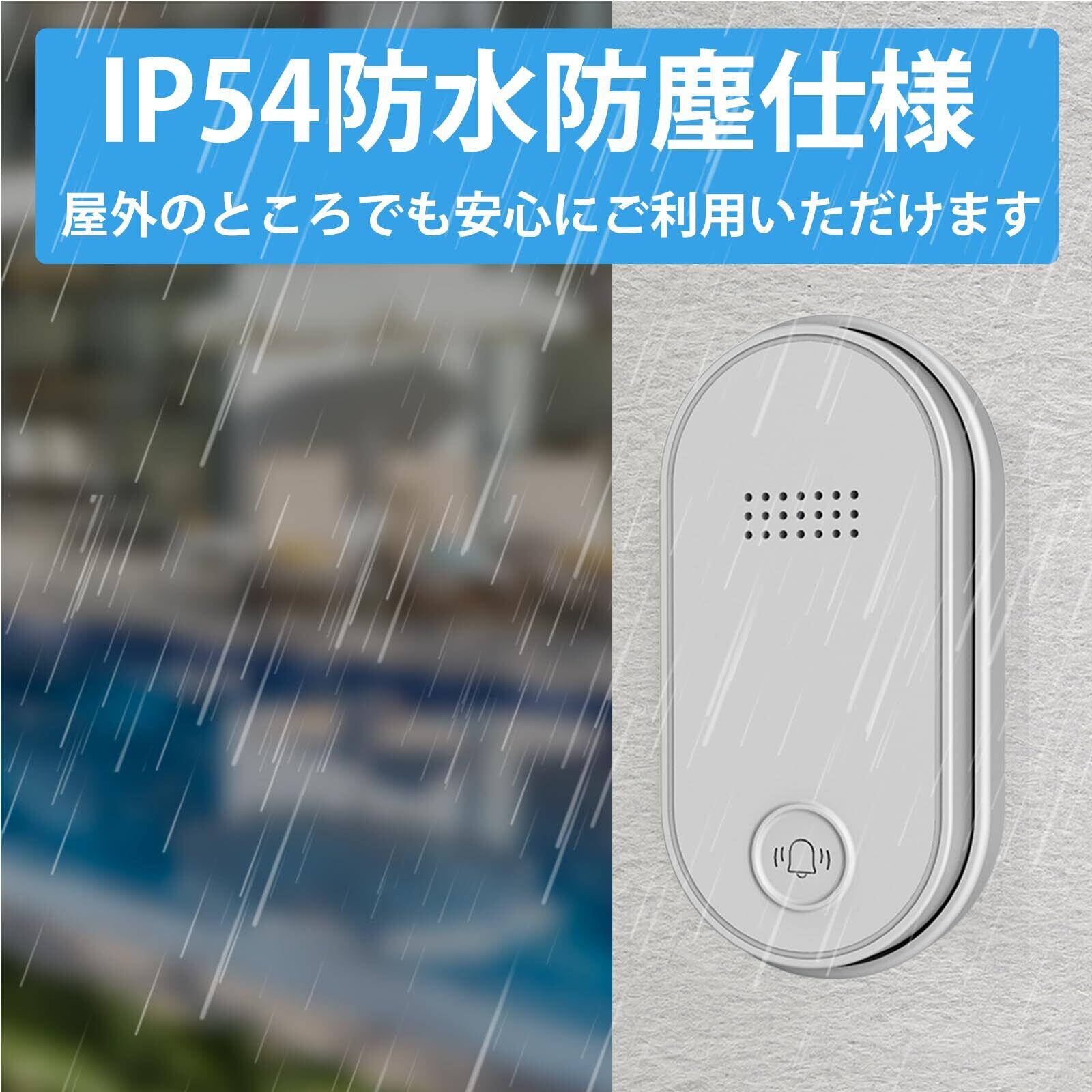【IP54防水防塵仕様】この玄関チャイムの送信機はIP54防水防塵内部構造を採用しており、中に水が入ってもちゃんと動きます。玄関や屋外、浴室など非常に水濡れしやすい場所でも使用できます。メンテナンスや交換頻度が低く、長時間使用するチャイムとしてとても信頼できます。