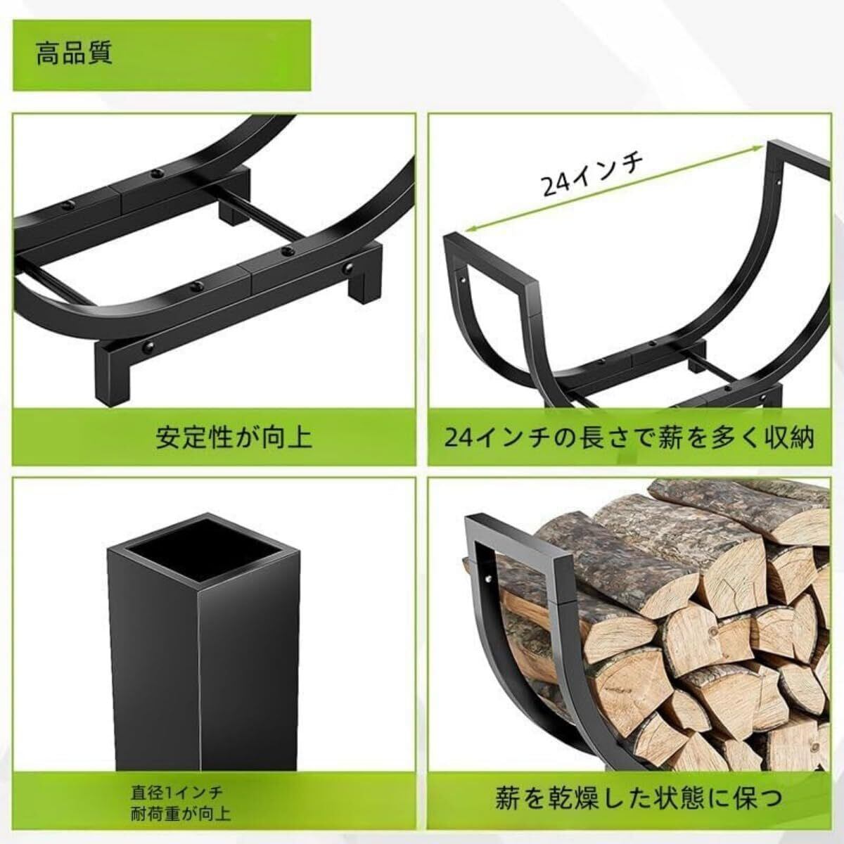 高品質素材:薪の棚は頑丈で耐久性のある 材料製です、大量の薪を積んでも安全な しっかりとした耐久性があります。黒のマットパウダーコーティングは、薪の棚の防水性、防錆性、耐摩耗性をします。