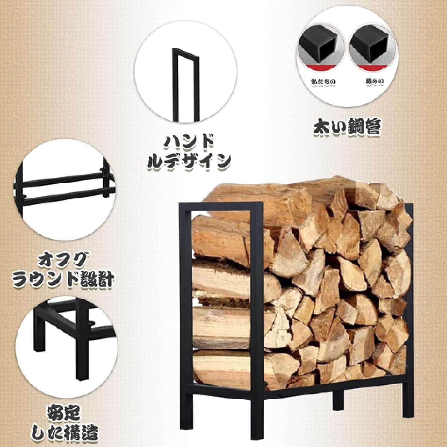 【ユニークなデザイン】底は地面から離れており、換気はよりスムーズで、薪は乾いた状態に保たれています。 サイズは60x25x61CMで、ストーブの近くに十分な薪を積むことができます。