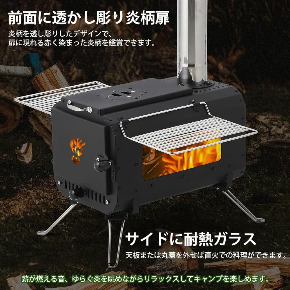pisipe 薪ストーブ 軽量 折りたたみ煙突 耐熱ガラス窓 コンパクト 小型 キャンプファイヤー バーベキュー 薪暖炉 テントストーブ キャンプ アウトドア