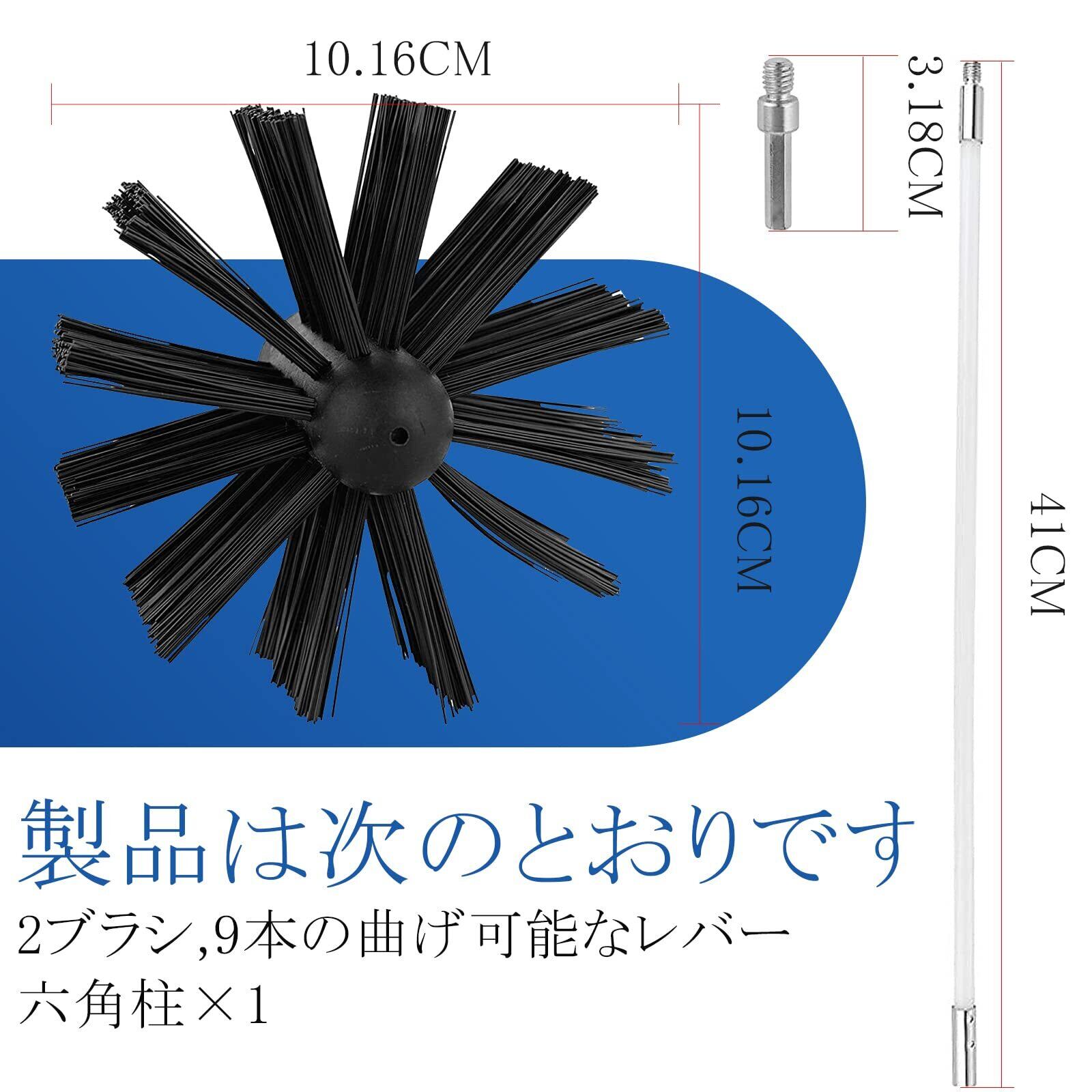 ziyue 煙突掃除ブラシ 煙突ブラシ 薪ストーブ 煙突掃除 2個 ブラシヘッド 9本ロッド 41cm 薪ストーブ ブラシ 掃除キット 煙突掃除棒 掃除機ドライヤーパイプ クリーニングブラシ 乾燥機用 薪ストーブクリーンアップ用