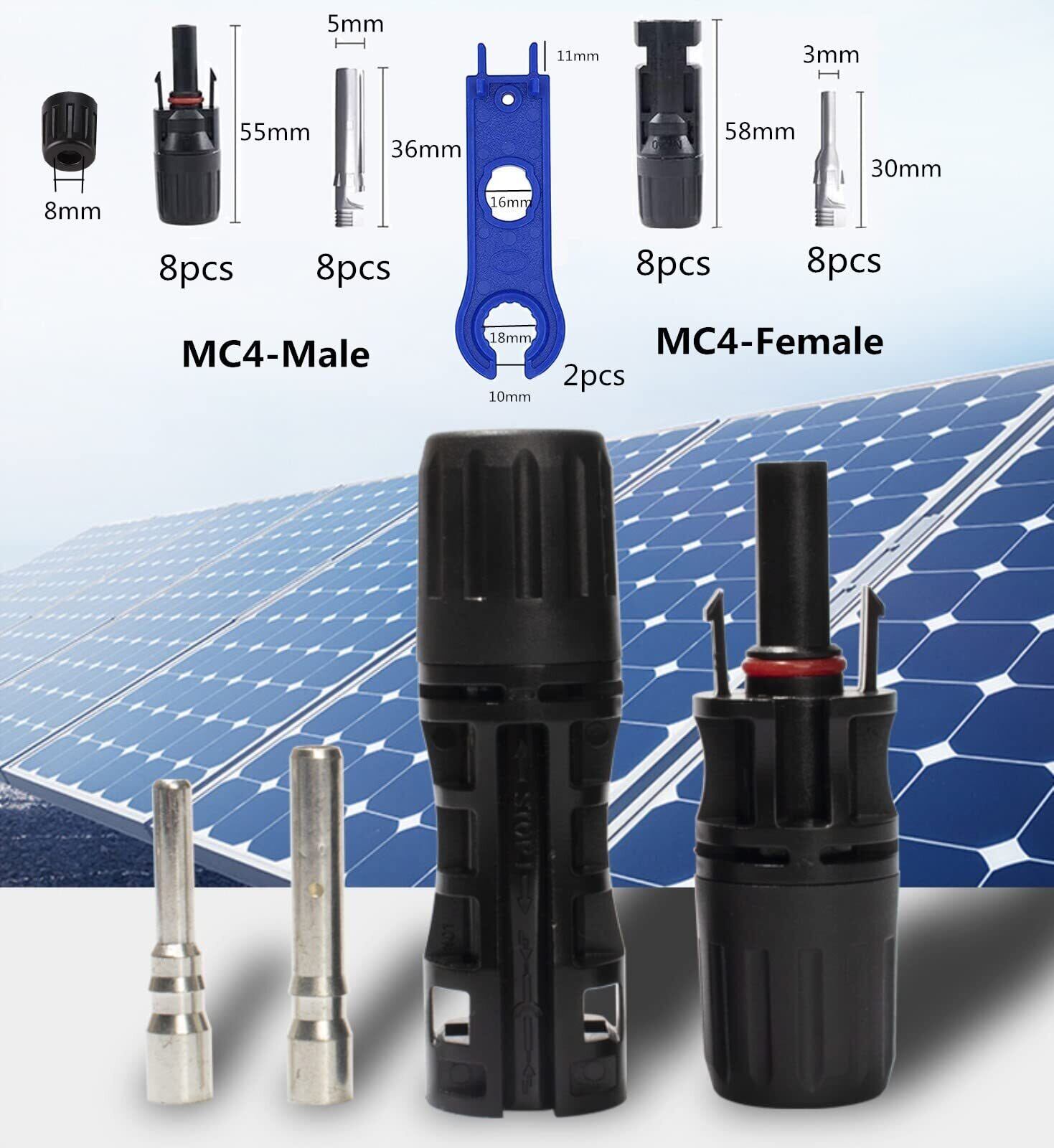 YFFSFDC MC4コネクター ソーラーパネル 接続ケーブル用 MC4型 コネクター (オス・メス) 8組 セット 取り付けレンチ付き 2本
