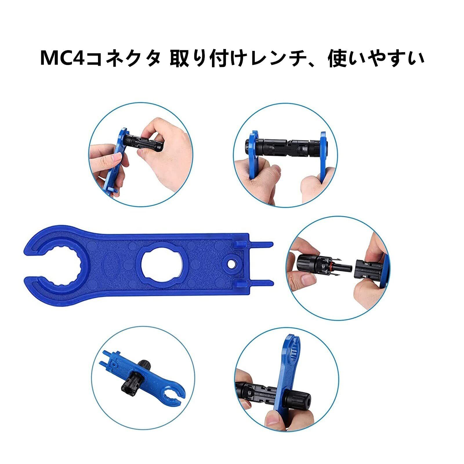 【パッケージ内容】コネクタ8ペア、MC4レンチが付属し。MC4のオスとメスのコネクタの組立と分解用に設計されています。軽量、持ち運びが容易で使いやすい。