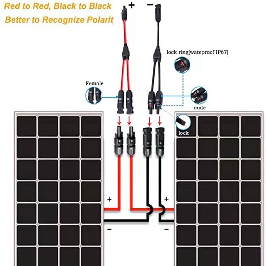ソーラーパネルY並列接続(1プラグから2ソケットおよび1ソケットから2プラグ)
