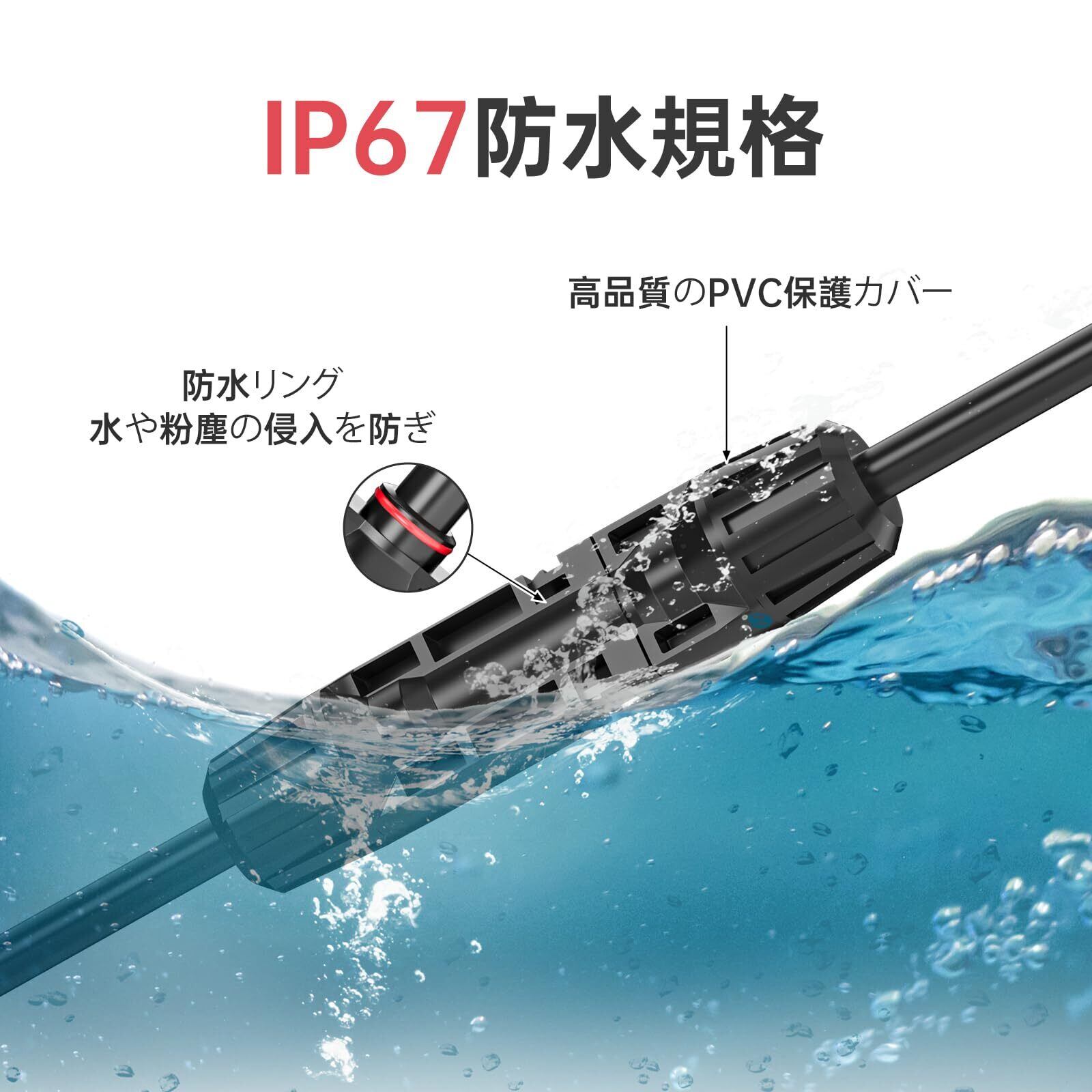 ソーラーパネル・ケーブル: 各ソーラーケーブル延長の両端にはプラグが付属しており、複数のケーブルを接続して長さを延長することができます。