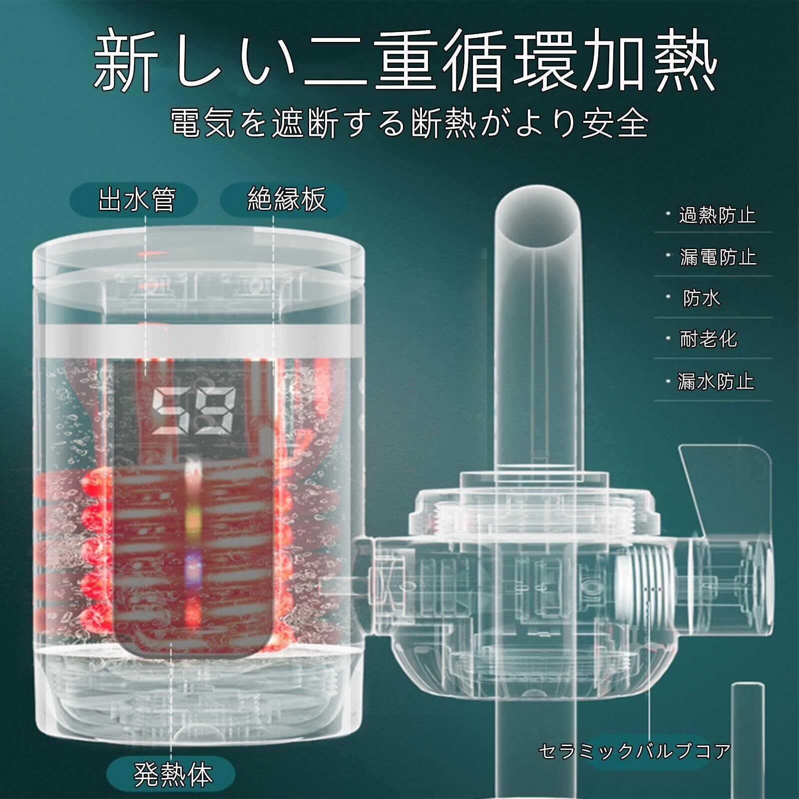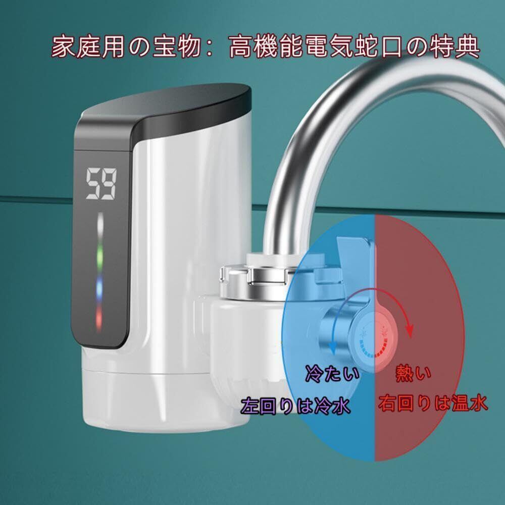 3秒高速加熱電気蛇口:すぐにお湯が使えます。30°C〜60°Cの多段階温度設定で、さまざまなお湯のニーズに対応。