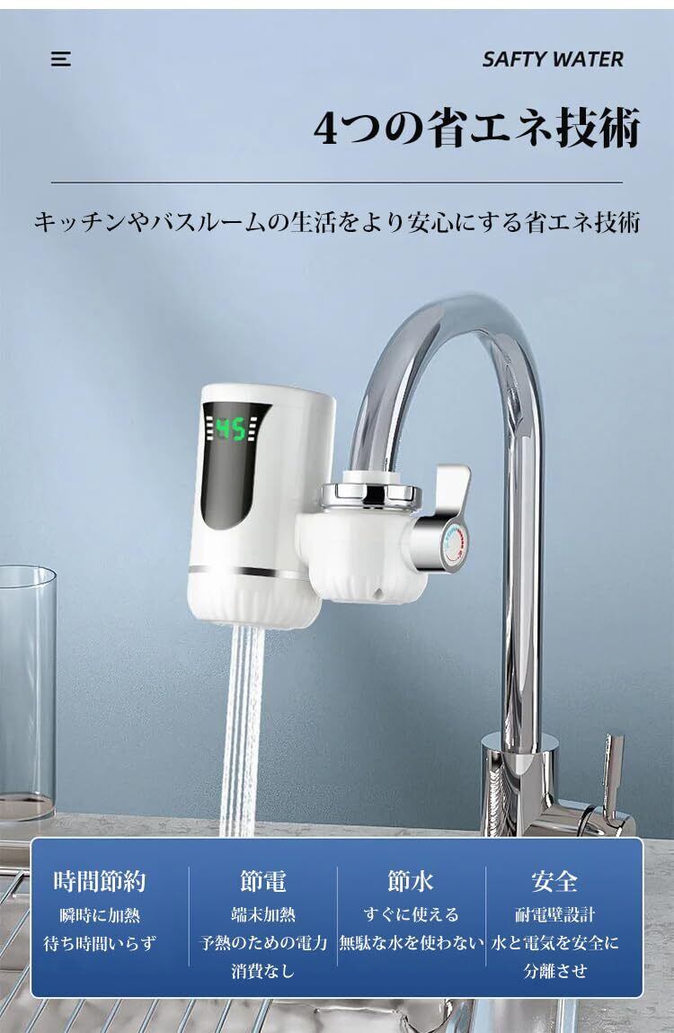 【LCD温度表示 - 電気温水器】高感度温度センサー、水温のリアルタイム表示、使い勝手。水温はいつでもコントロールできます。寒い季節に野菜を洗うのは便利です。冬の両親へのプレゼントとしても使えます。