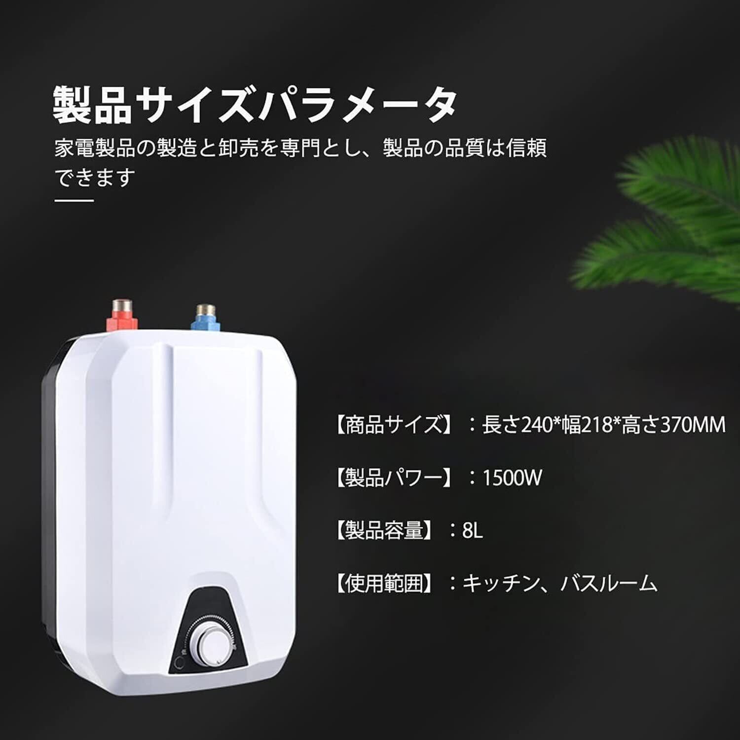 110V給湯器 小型電気温水器1500Wミニ電気タンクレス給湯器55℃~75℃ 調節可 電気温水ヒーター 8L 大容量 コンパクトで 取り付けやすい バスルーム/キッチン/洗濯/洗面台 家庭用