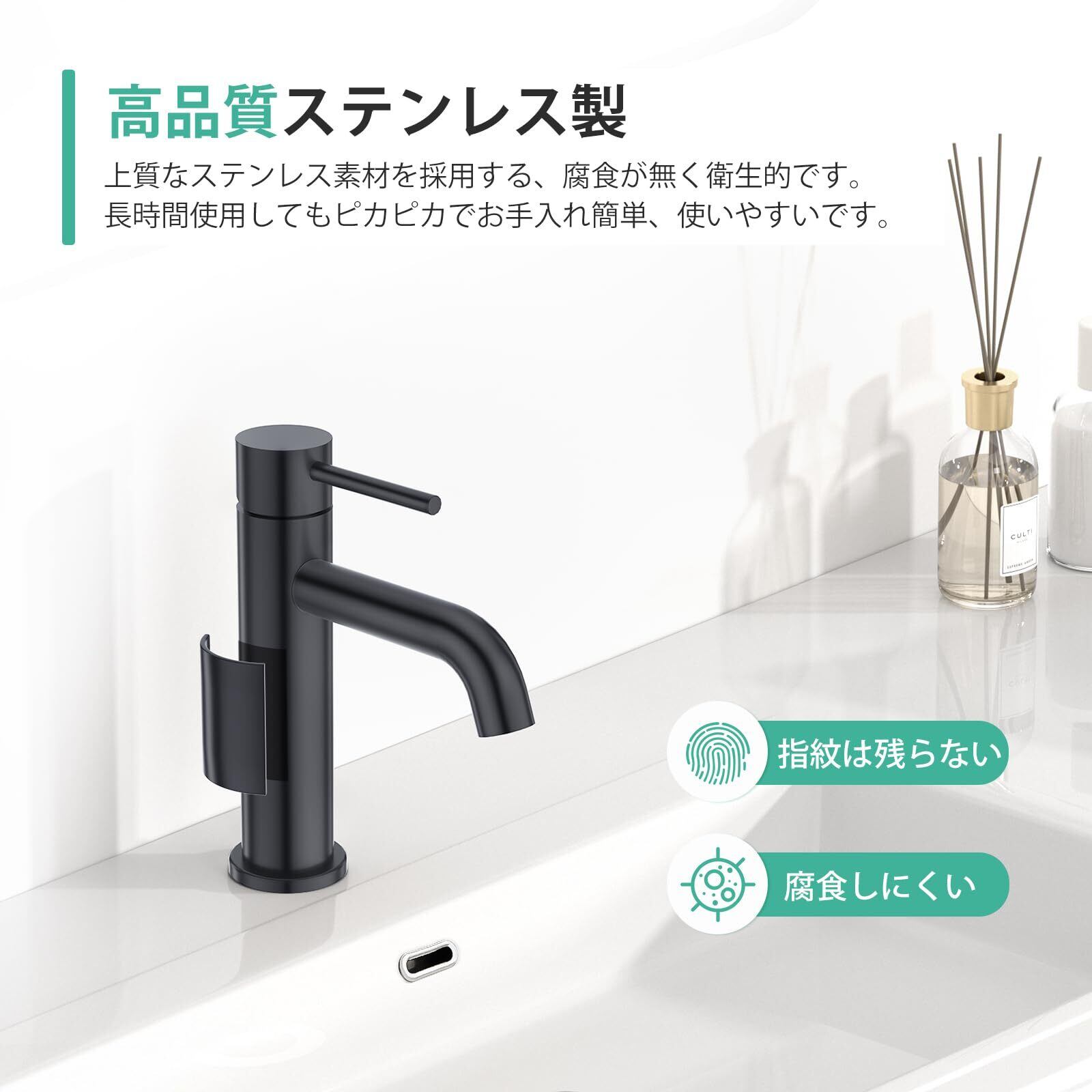 faustina洗面蛇口 洗面台水栓 単水栓 洗面水栓 シングルレバー 単水栓 洗面所 洗濯室 庭用 洗面 手洗い ステンレス製 ブラック