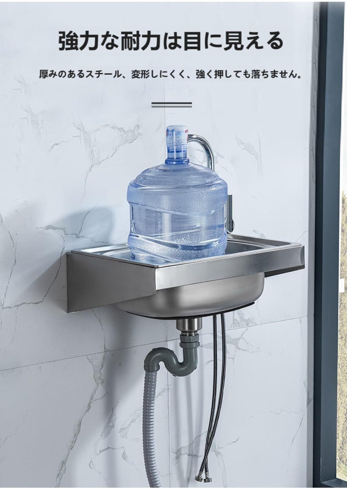 【スペース節約のデザイン】壁掛け式の大型シンクで、床面積を占有しません。設置高さを自由に調整できるので、狭い空間でも効率的に利用できます。空間の活用度を高め、収納や作業の邪魔になりません。