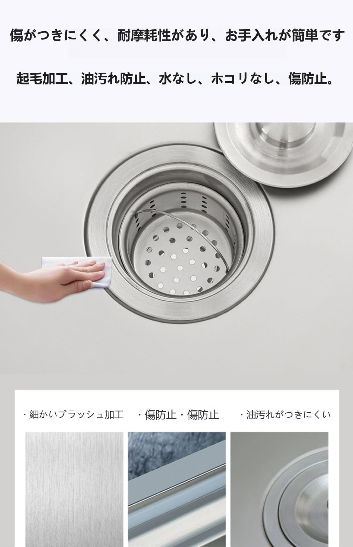 この業務用流し台は、多くの利点を兼ね備えた実用的なアイテムです。素材としてはステンレス鋼を使用しており、一体型の引抜加工を施しており、表面が滑らかで美しい外観を呈します。日常の使用でも容易に変形せず、耐久性が高く、高い耐荷重性を持っています。また、シンクの底にはコンパウンドの層を更新しており、結露が溜まらないように工夫されています。組み立てられた調整脚のデザインを採用しており、組み立てと分解が簡単で、さまざまな地形に合わせて高さを自由に調整できます。用途は非常に広く、庭先やベランダ、キャンプ場、飲食店などで活躍します。お庭でのガーデニングや BBQ の際の使用にも便利です。耐腐食性があるステンレス製なので、雨風にも強く、屋外に設置したままでも安心して使い続けられます。キッチンシンクの排水口は取り外し可能なフィルター付きで、食べ物やゴミが排水口を詰まらせるのを防ぎます。U 字型排水システムを採用しており、大口径なので排水が早いです。また、防臭効果があり、這い上がらず、詰まりに効果できます。下水道管の内部は鉄でできており、折れたり引っ張られたりすることがなく、漏れもなく、寿命も長いです。三段物置台があり、用具収納や野菜洗いに便利です。静音加工も施しており、キッチンの水はね音が抑えられます。ただし、手作業による採寸のため、1 から 2cm の誤差が生じる場合があります。製造時に、ブラケットの端が粗くなることがありますので、取り付けの際には十分にご注意ください。全体として、この流し台は多くのシーンで便利に使用できる優れた商品です。