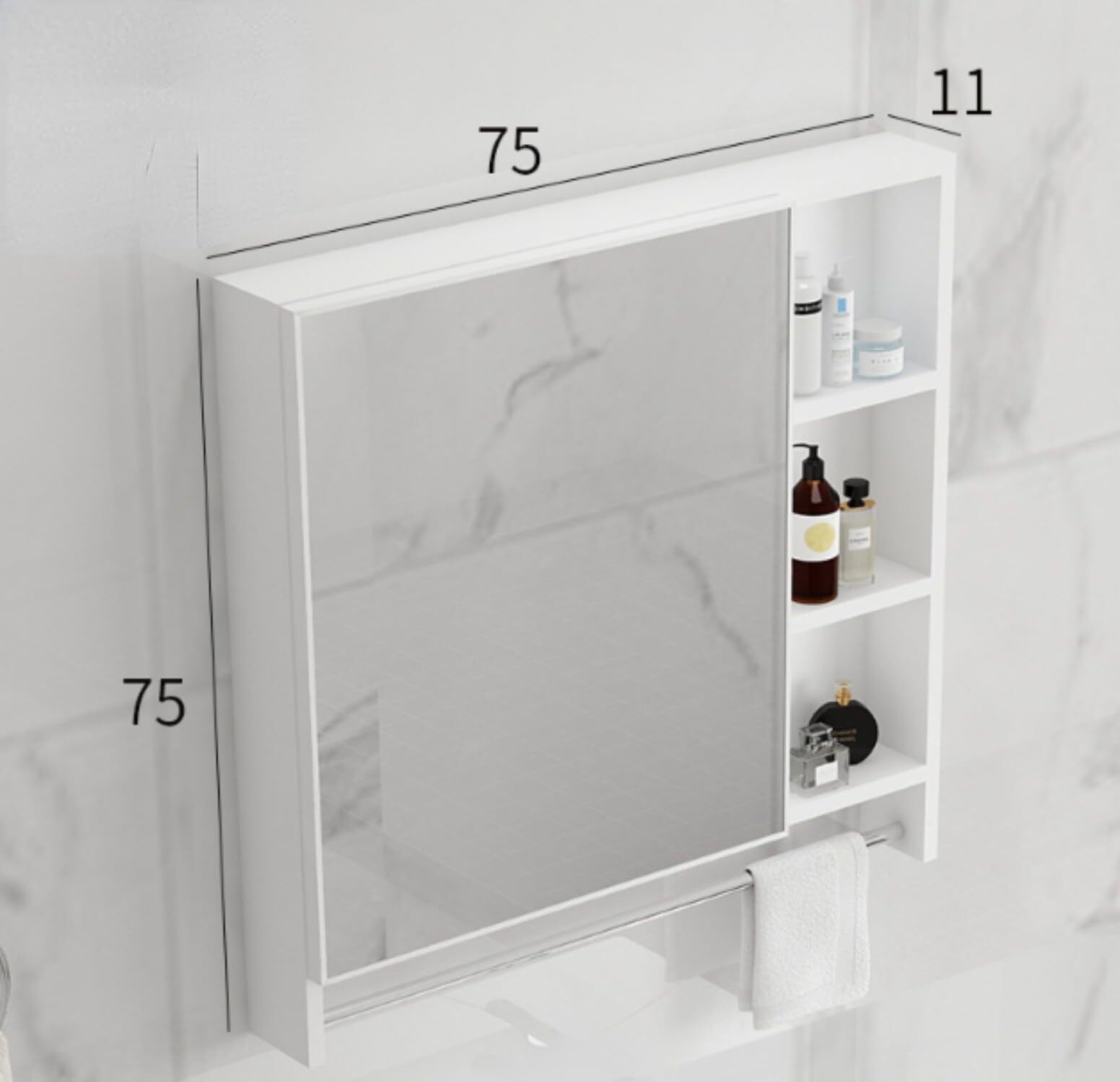【数量限定】Mearrineser ミラーキャビネット ミラーボックス スペース アルミニウム浴室キャビネット 組み合わせ セパレート 収納ボックス 浴室 壁掛け収納ミラー 浴室ミラー 浴室洗面台 ミラーキャビネット 浴室ミラー 収納キャビネット 浴室ミラー 収納ラック 壁掛けタオルラック アルミニウム マルチレイヤー収納 シンプル (75*75cm,ホワイト) | Cherry Blossoms