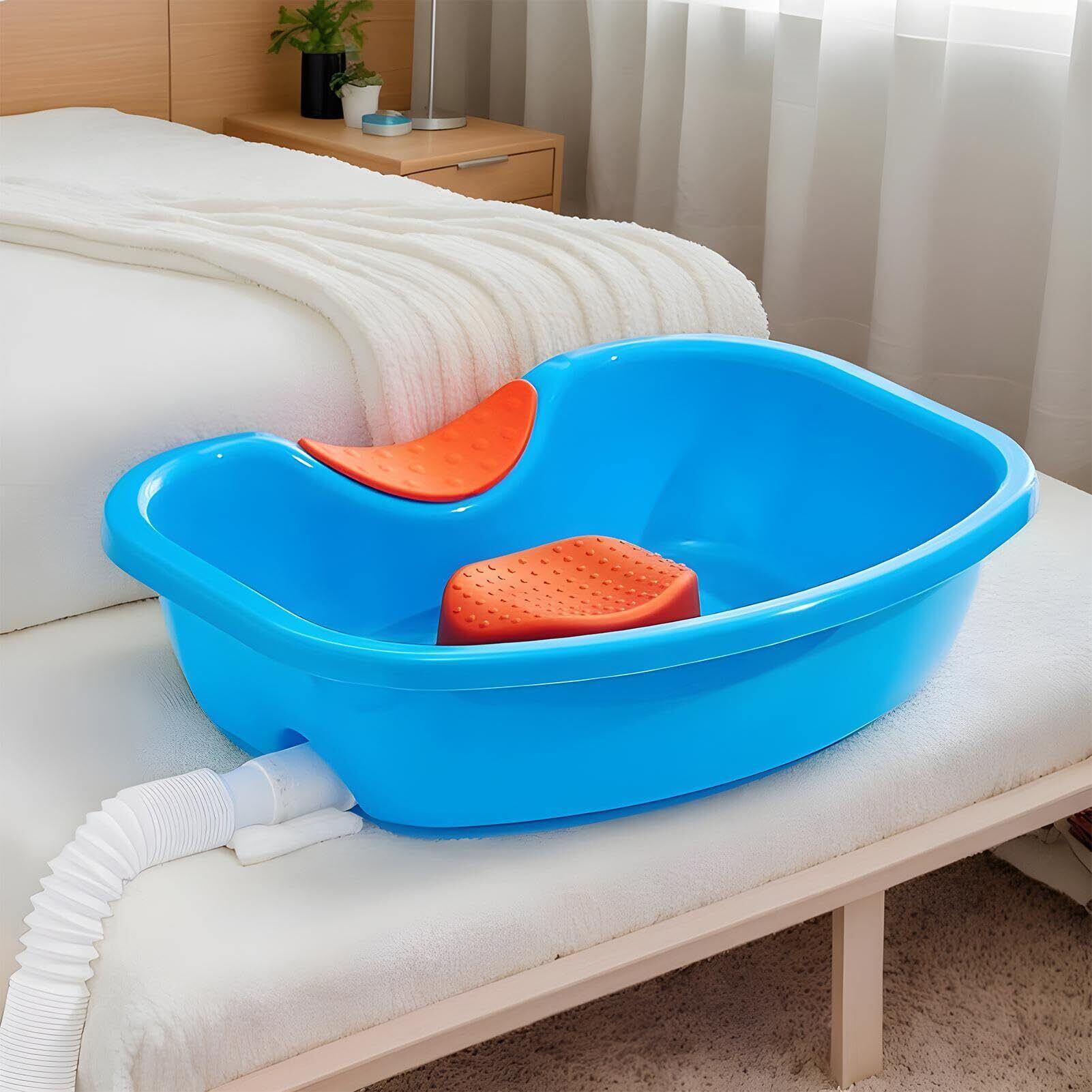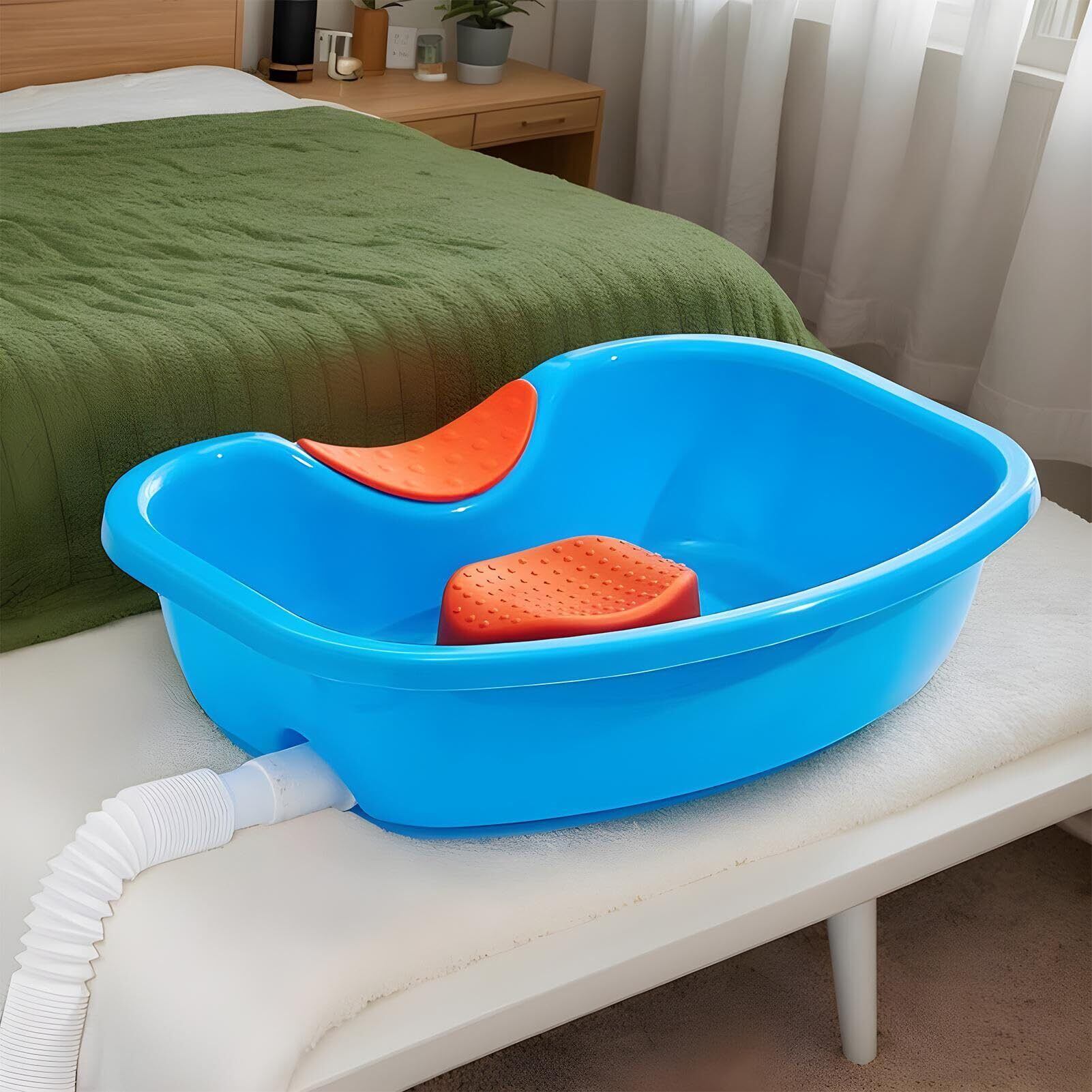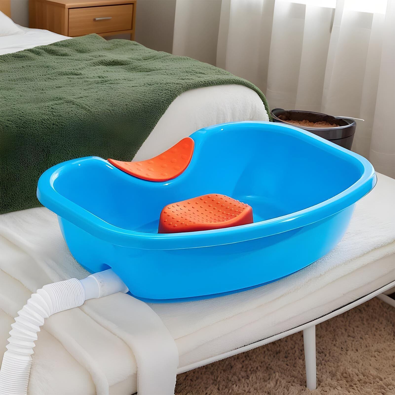 【寝たまま洗髪できる】介護が必要な高齢の方の洗髪に:寝たままの状態で洗髪できる洗髪槽です。高品質のPPで作られており、環境にやさしく、変形せず圧力に耐えるほど十分な強度があります。またお湯を入れても変形しにくい素材です。