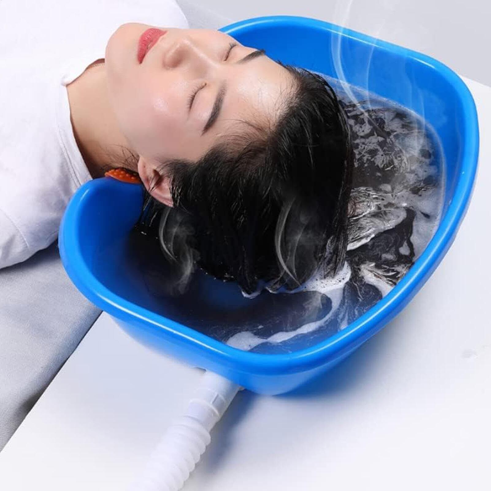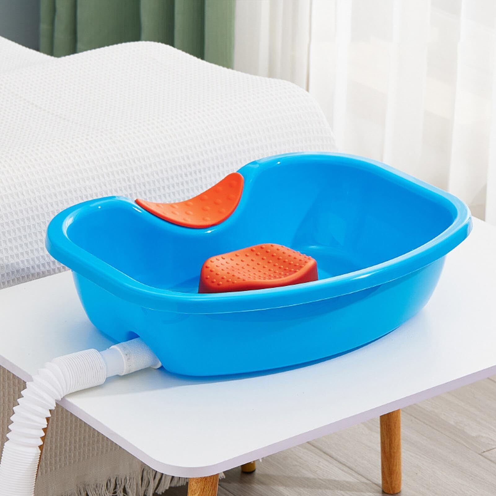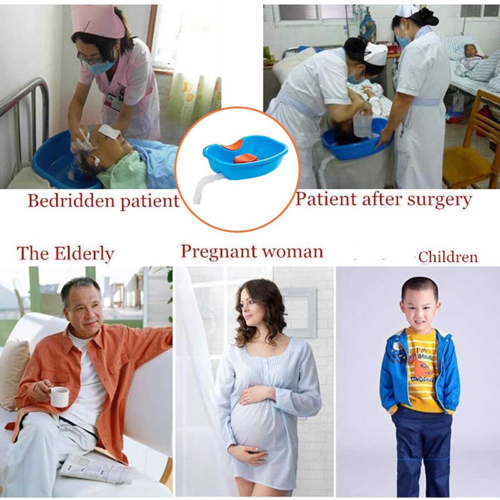 【寝たまま洗髪できる】介護が必要な高齢の方の洗髪に:寝たままの状態で洗髪できる洗髪槽です。高品質のPPで作られており、環境にやさしく、変形せず圧力に耐えるほど十分な強度があります。またお湯を入れても変形しにくい素材です。