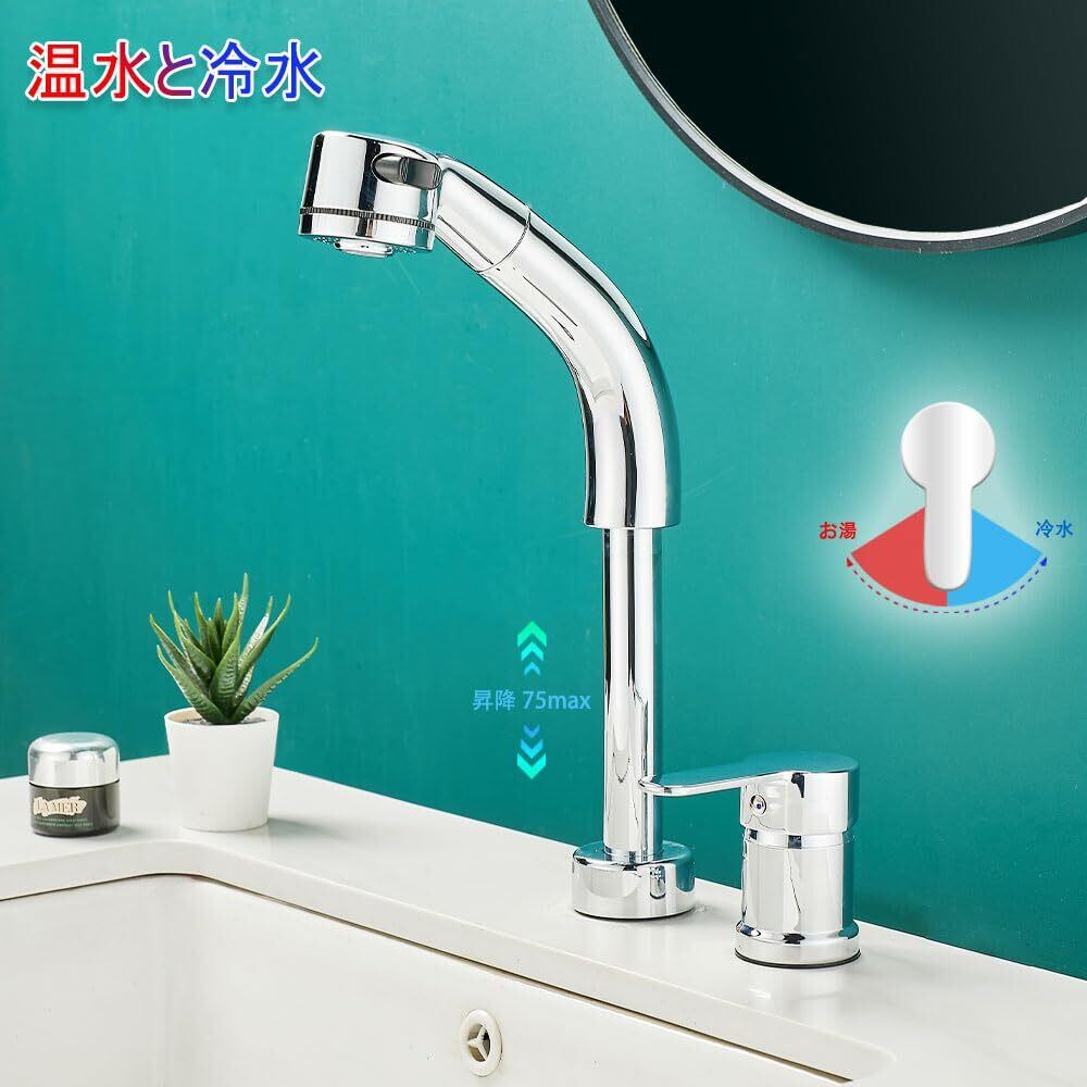 【在庫セール】KOLERTHR 洗面台蛇口 洗面用水栓 ツーホール式 シングルレバー混合水栓 台付き2穴 ホース引き出し式 360°回転 吐水口昇降 二重機能スプレイヤー 水栓金具 洗髪用 取り付けホース付き クロム | Cherry Blossoms