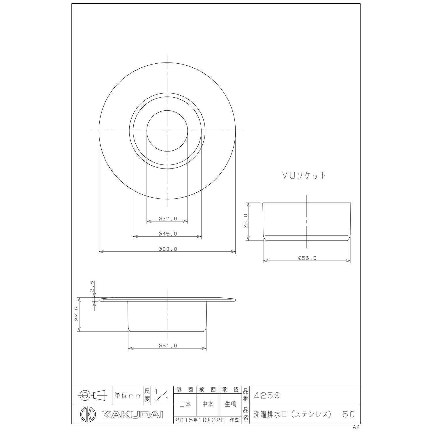 カクダイ 洗濯排水口 ステンレス 50 VP・VU兼用 4259