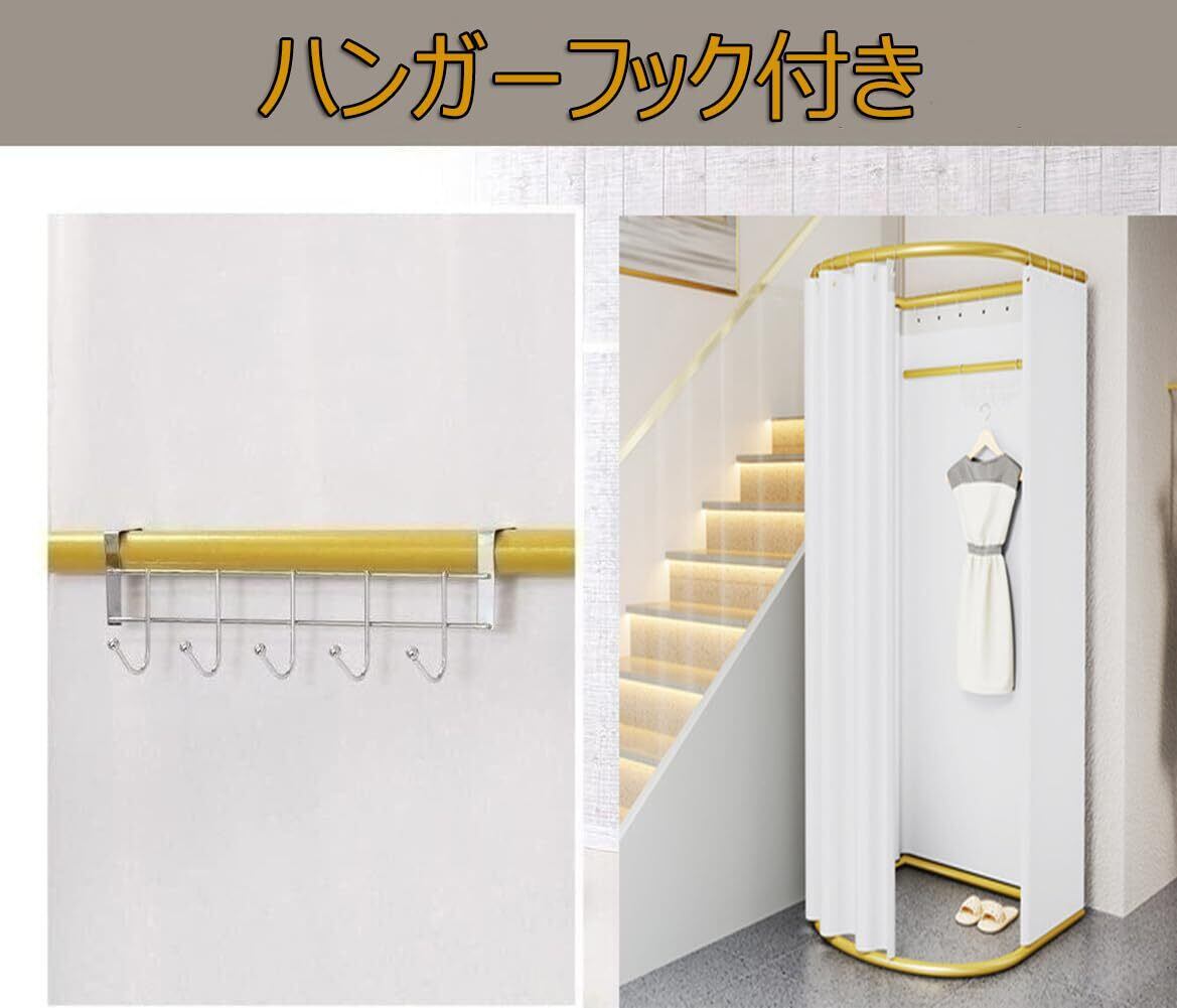 【高品質・実用性】カーテンは90%以上の光をカットできる厚手の高密度生地に使用しており、プライバシーを最大限に守ります。カーテンは吊り上げやすく、スムーズにスライドできます。内側には付属のハンガーフック付きで、服やカバンをサッと掛けられます。角は丸く仕上げて安全性を向上しました。