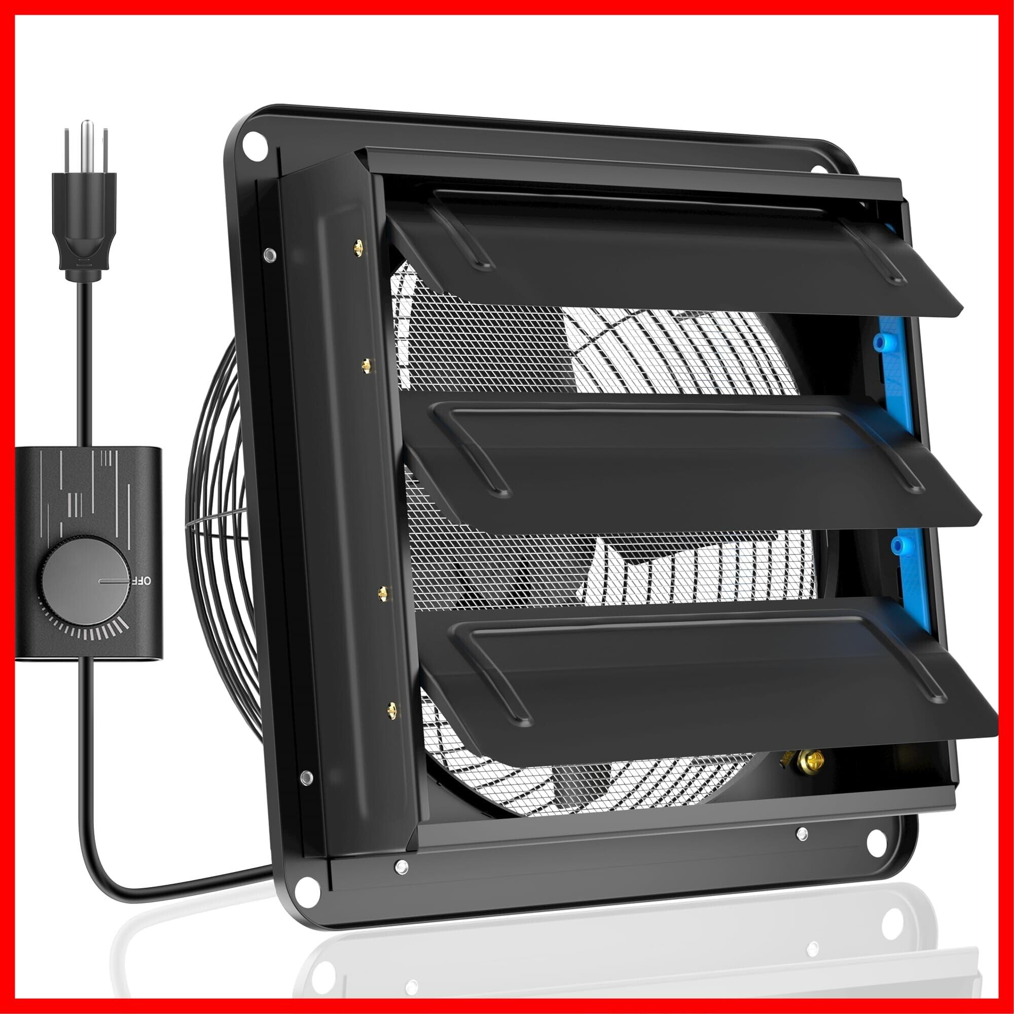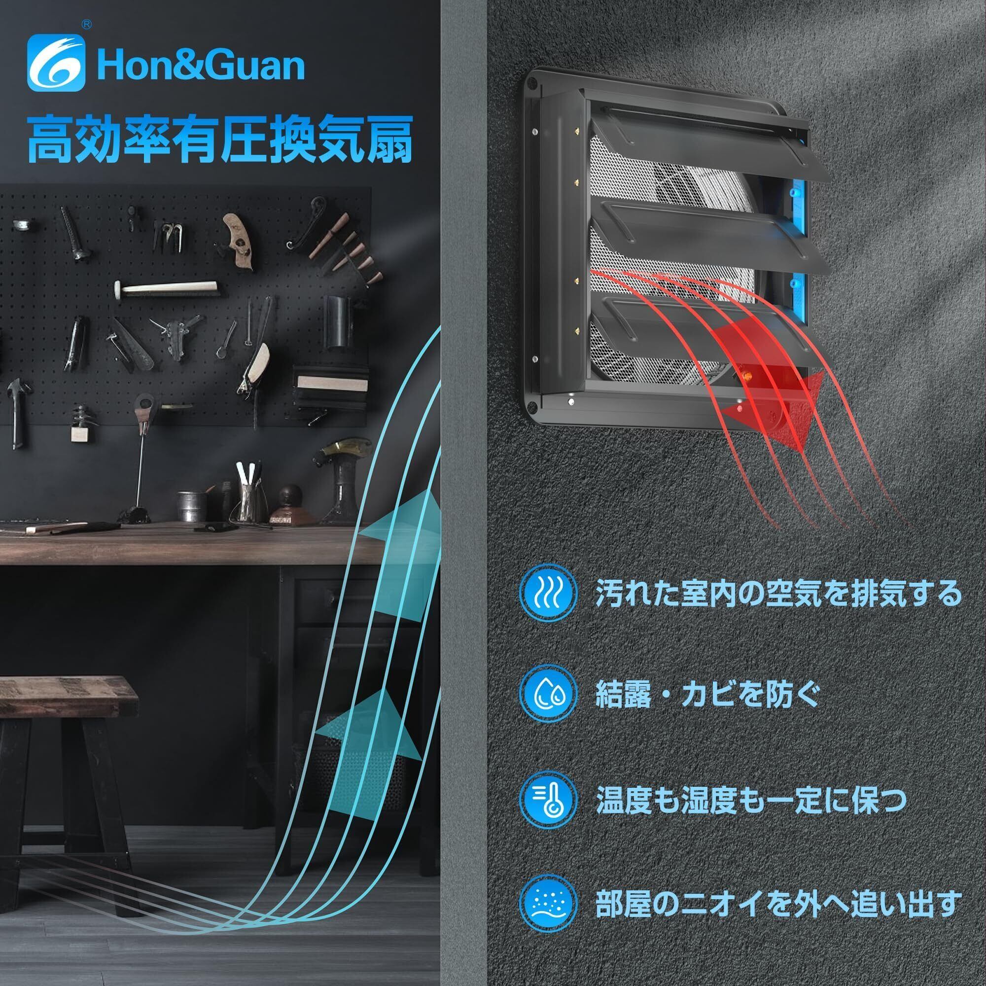 Hon&Guan 換気扇 250mm 有圧換気扇 無段階スピード【インボイス制度登録店】コントローラー付き シャッター付き 産業用有圧換気扇 低騒音 排気専用 単相100V 工場・作業所・倉庫用 (羽根径25cm,無段階スピード)