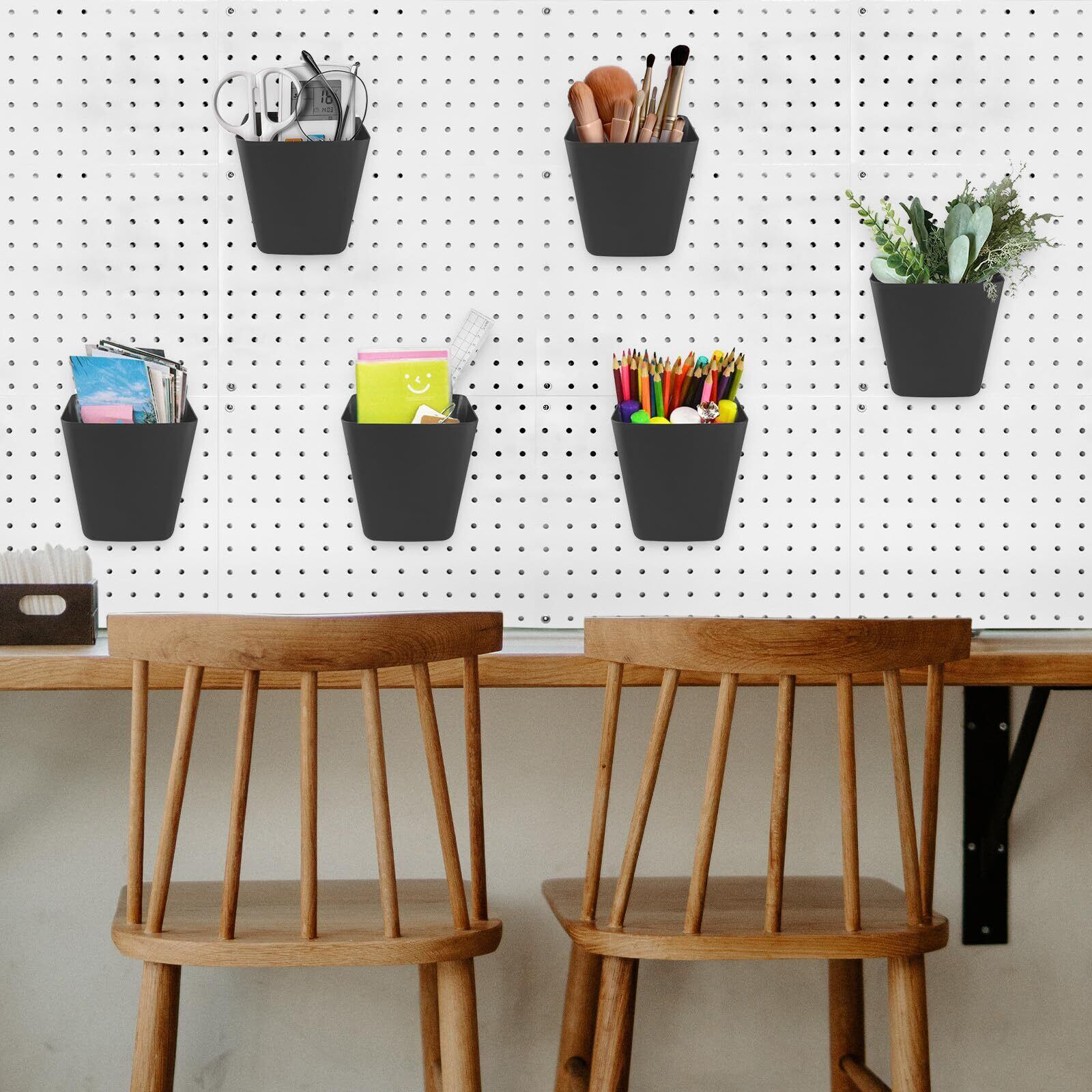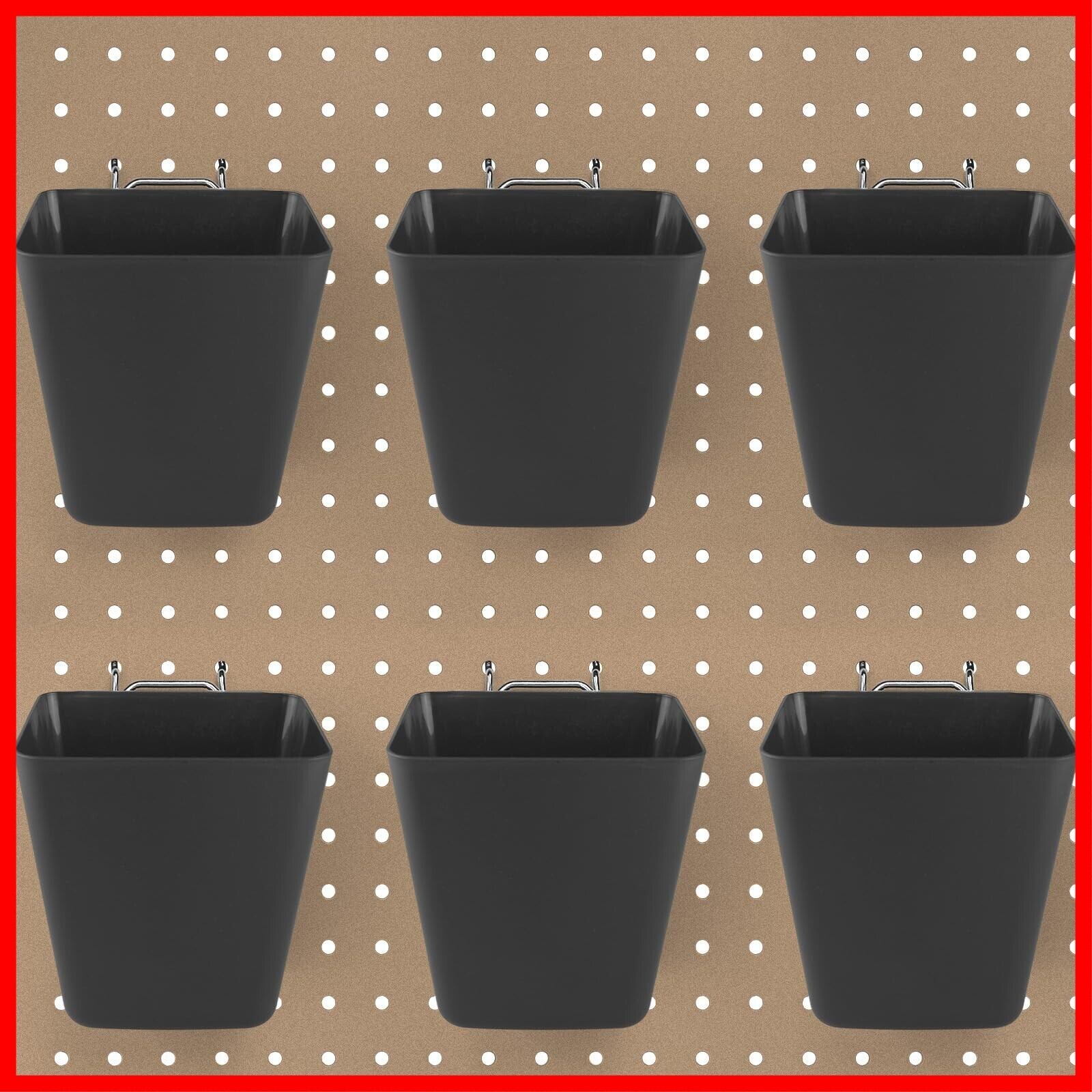 【在庫セール】6個入り パンチングボードカップ ペグボードカップ 有孔ボード ペグボード収納ビン パンチングボードフック メタルフック付き ピッチ ボードフック ガレージワークベンチビン カップ ペグボードアクセサリーキット 吊り下げラック プラボックス付き ハードウェア ディスプレ ワークショップ 壁面収納 クラフトルーム (ブラック) | Cherry Blossoms