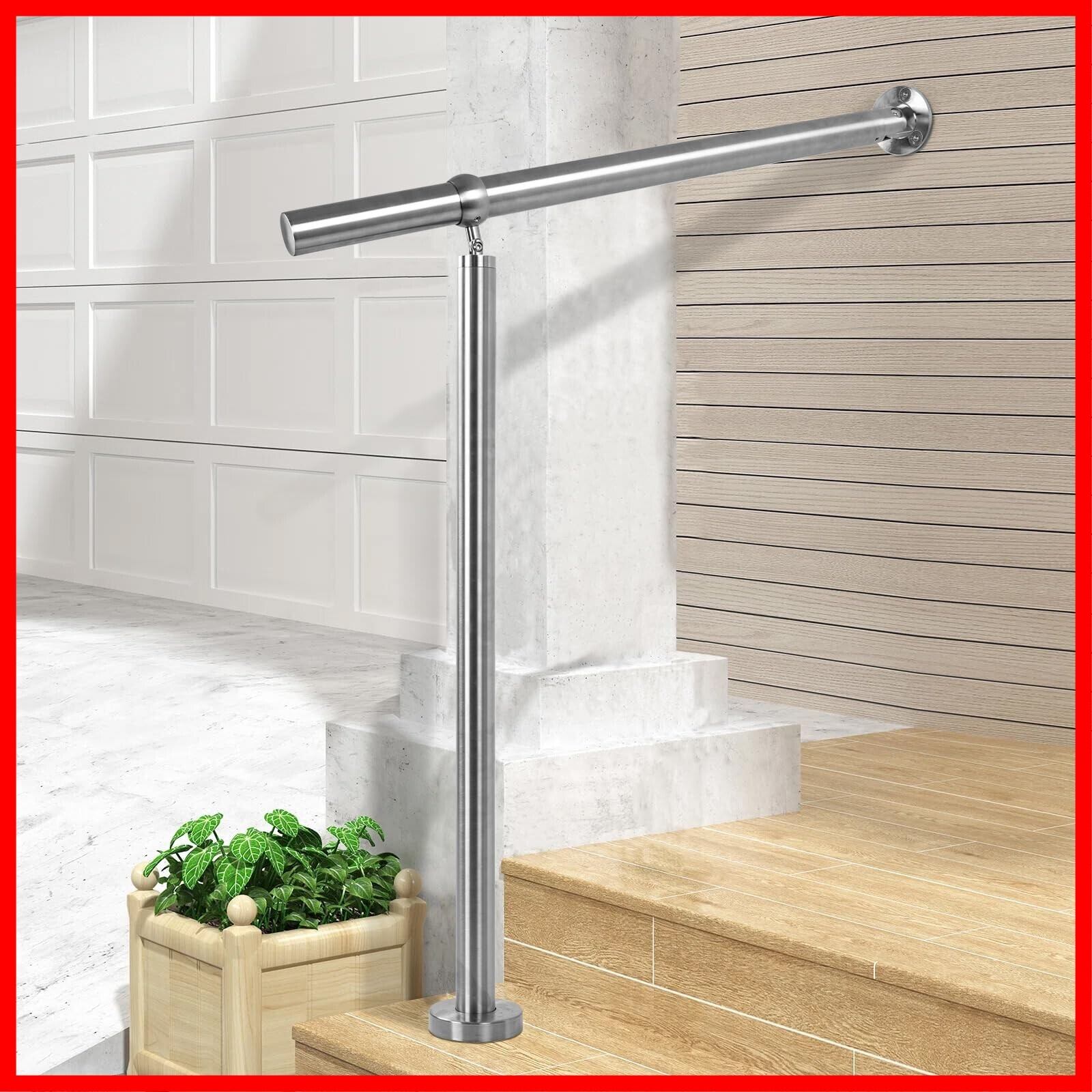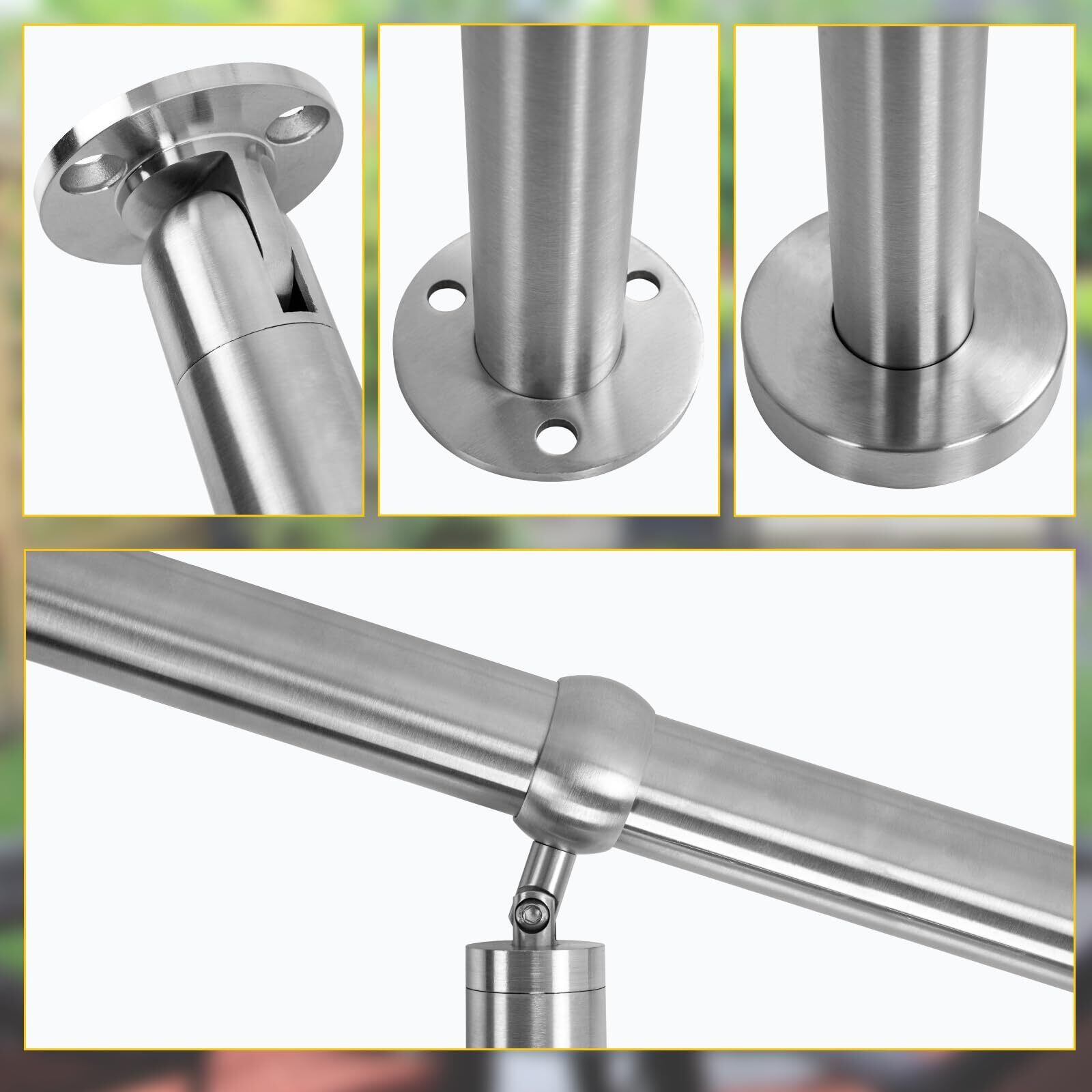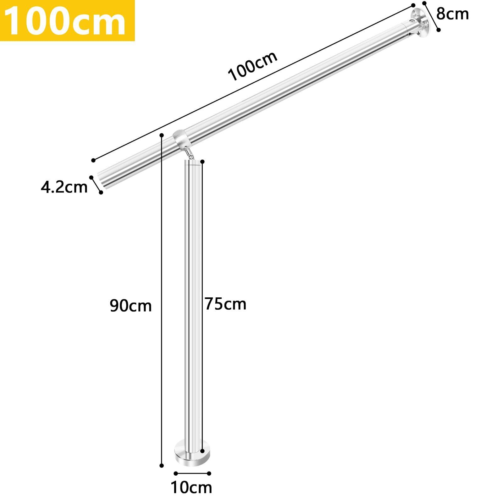 BQKOZFIN 304ステンレス鋼 階段手すり DIY 階段手すり 入口角度調整可能 屋内/屋外使用 取り付け簡単 滑らかなつや消し表面 高さ90cm 直径42mm 厚さ1.2mm 長さ100cm シルバー