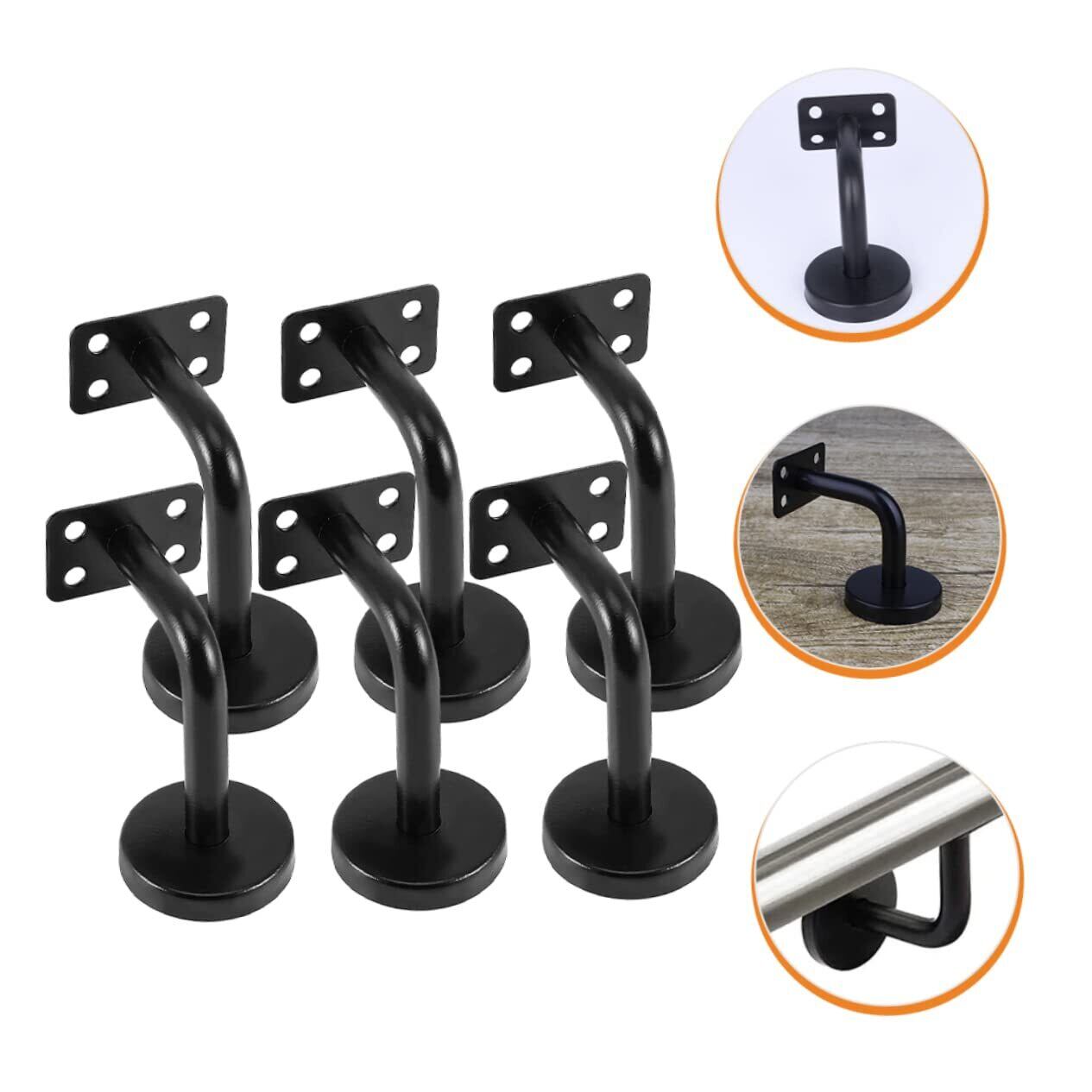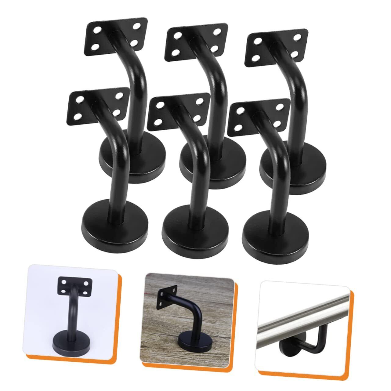 SOLUSTRE 6個 階段手すりブラケット 階段手すり壁ブラケット 黒の棚受け 室内手すり用金具 ぬくもり手すり パイプシェルフブラケット 階段の手すりブラケット L型受付ブラケット 屋内階段用手
