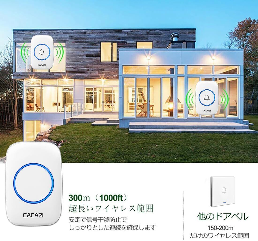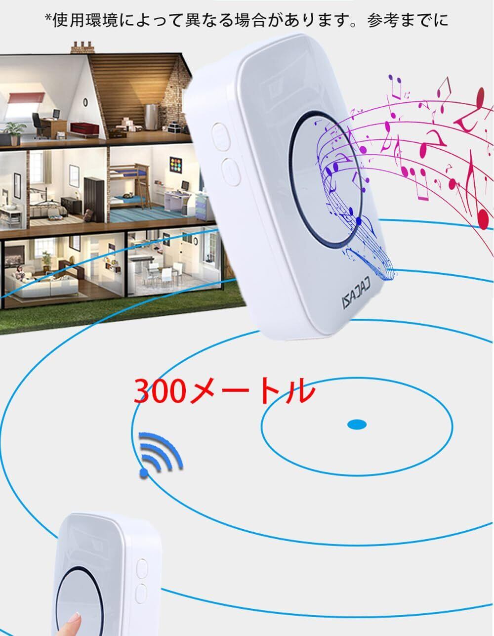 【安定な転送】:こちらの呼び出しチャイムは障害のない場所で、ワイヤレス通信が最大300メートル(メーカー)の長距離まで届けます。高感度受信機で、壁、木ドアー、鋼ドアーなどに安定受信でき、2階建ての建物でもご使用いただけます。工事なしで設置が簡単です。