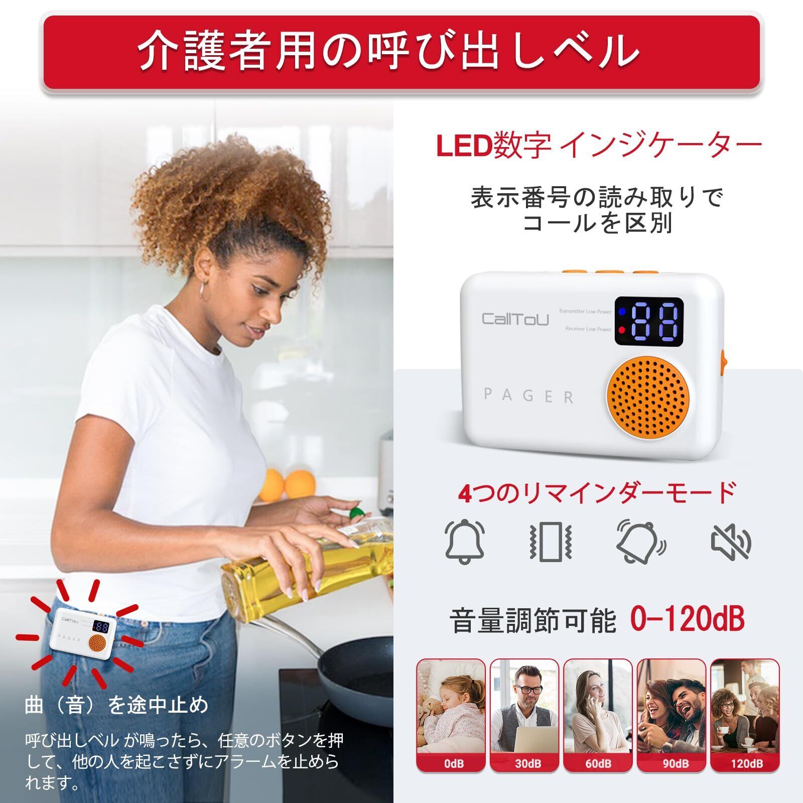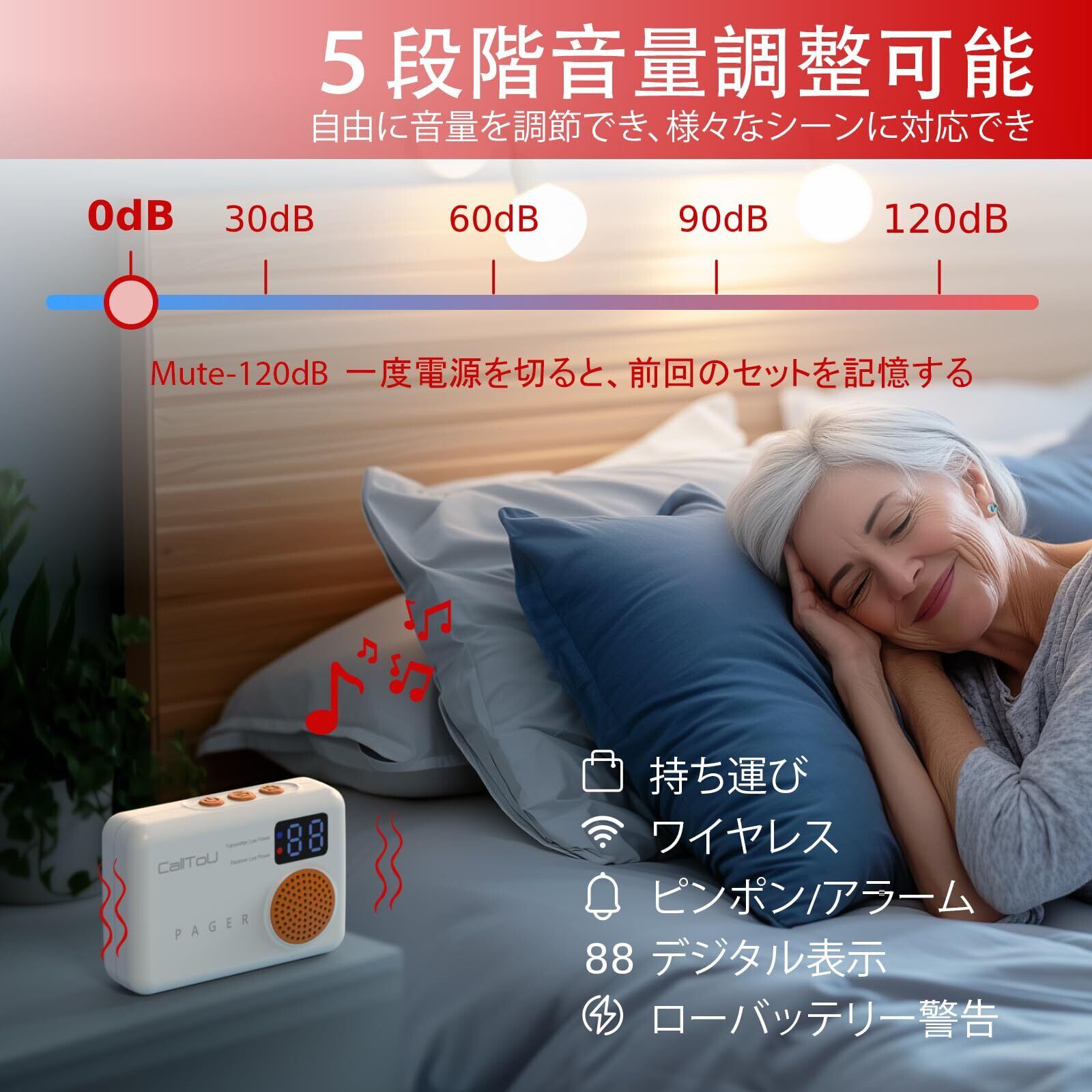 【5段階の音量調整】呼び出しベル受信機は5段階の音量は、ニーズに応じて音量を調整でき、大きすぎておびえることはありませんし、小さすぎて聞こえないことはありません。耳が遠い方に便利です