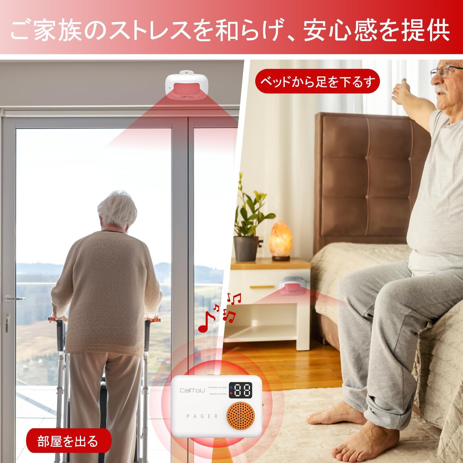 CallToU ワイヤレスチャイム 人感センサー 玄関チャイム 徘徊センサー 呼び出しベル 介護 家庭用 電池式 配線工事不要 動体検知 携帯しやすい 5段階音量調節 150M受信 高齢者 お年寄り 患者 妊婦 受信機*1 送信センサー*2
