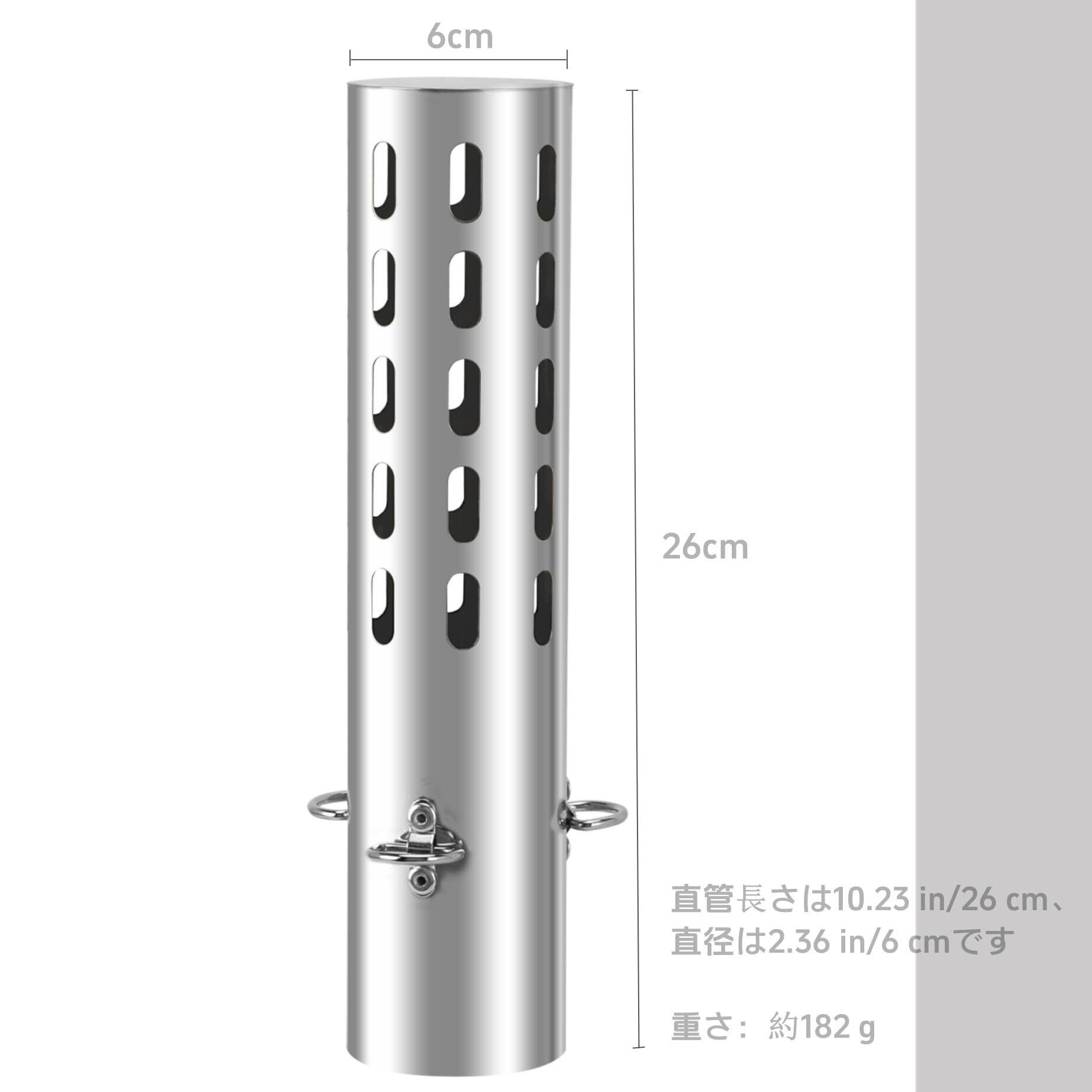 【仕様&用途】サイズ約直径6×高さ26.2cm. 用途:適切な薪ストーブ/アウトドアキャンプテントストーブ/ハンモックテント/暖炉/キャンプストーブなどです。