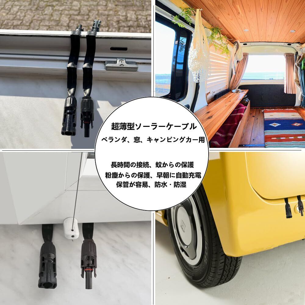 {スルーウィンドウケーブル} 超薄型、折り曲げ可能なソーラー充電ケーブル、バルコニーや窓際、屋根、車中泊など、長時間でも短時間でも使用可能、有効長50cm、6mm²の生産仕様、800W以上のソーラーパネルを接続可能、35Aの大電流に対応