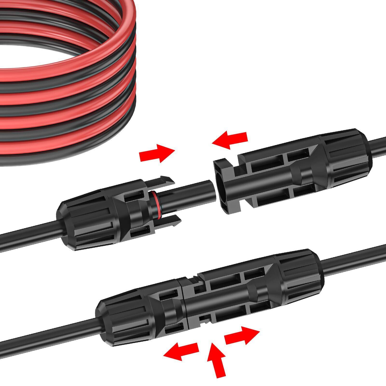 ソーラーパネル・ケーブル: 各ソーラーケーブル延長の両端にはプラグが付属しており、複数のケーブルを接続して長さを延長することができます。