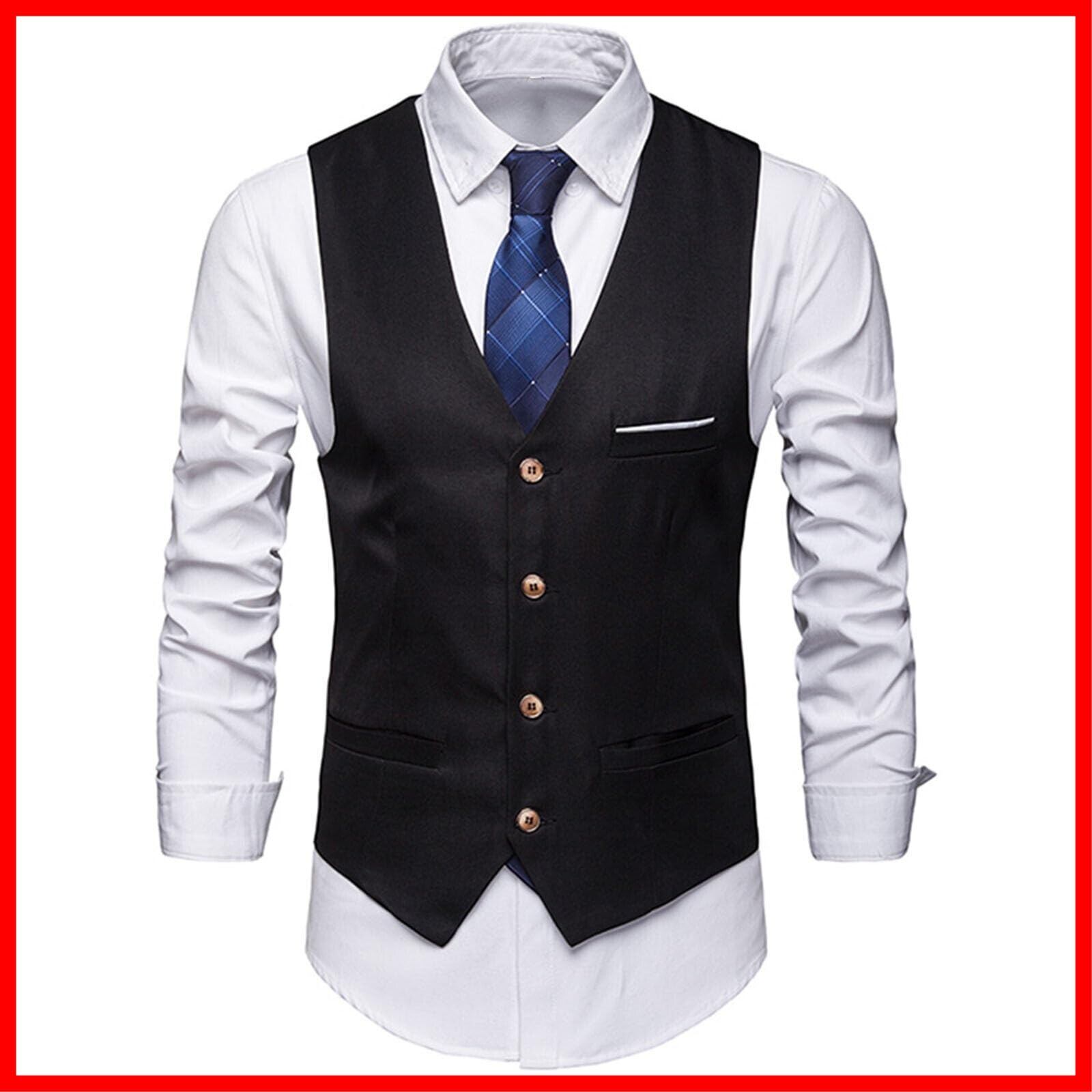 【在庫処分】[veolaimy] スーツベスト メンズ Vネック スリム 無地 上品 フォーマルベスト ビジネス カジュアル ジレベスト 5ボタン 2ポケット チョッキ 大きいサイズ 人気 ブレザー 光沢 定番 ヴィンテージ 紳士 結婚式 通勤 就活 冠婚葬祭 就職(B-ブラック,5XL) | Cherry Blossoms