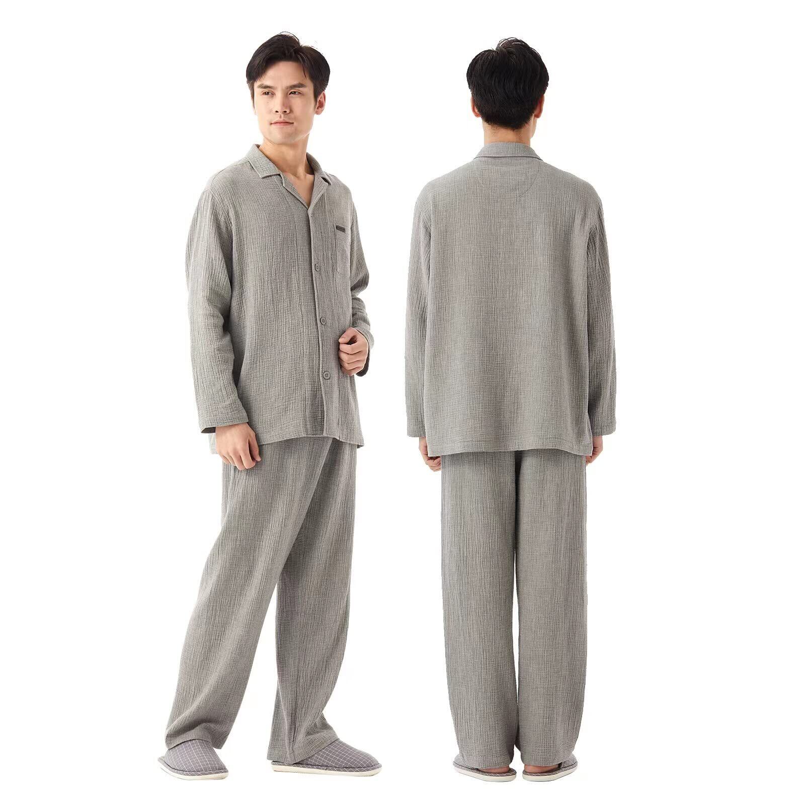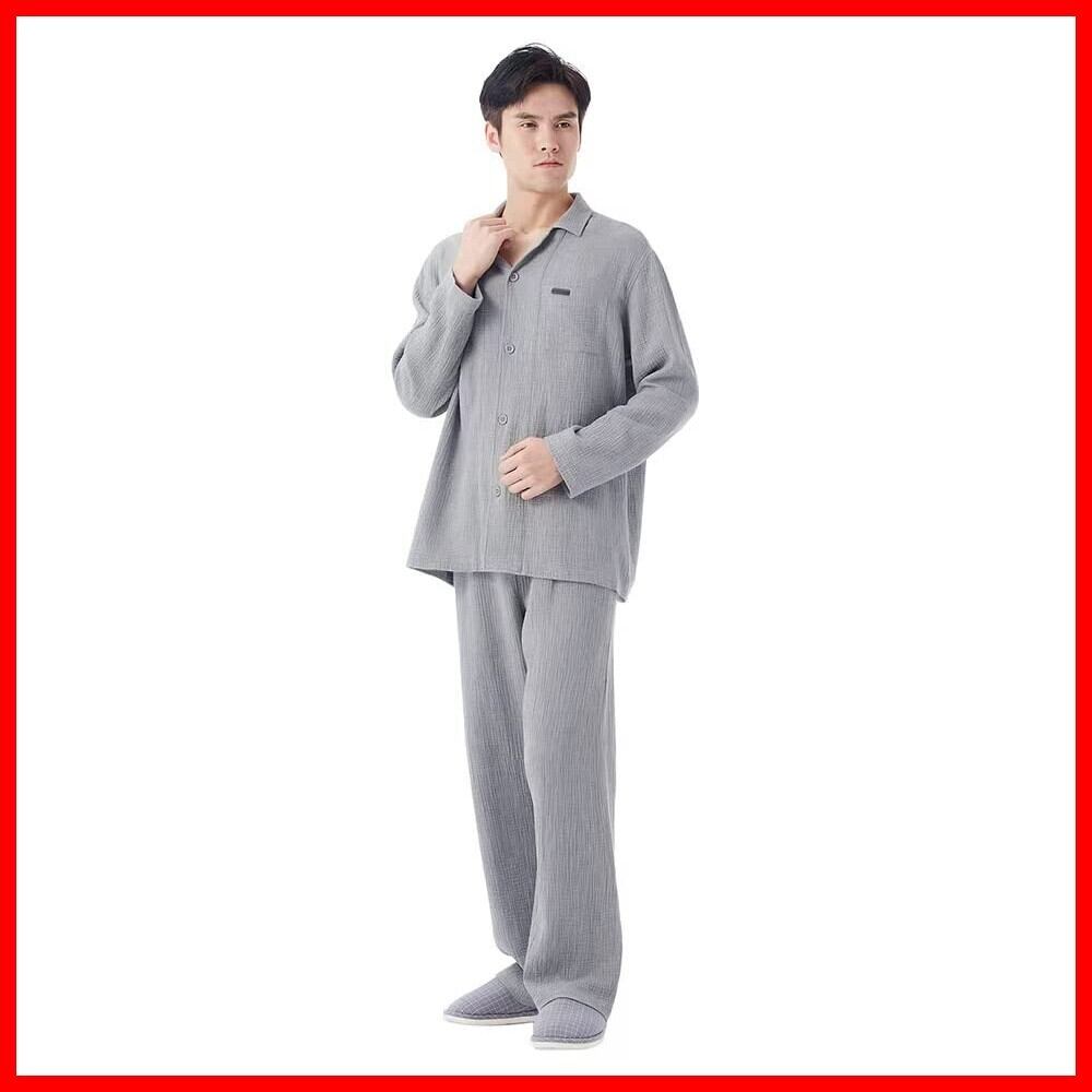 [HOME&FAMILY] パジャマ 綿100 二重ガーゼ メンズ ルームウェア 長袖 上下セット 前開き 吸汗 通気 肌に優しい 部屋着 春 夏 秋 冬