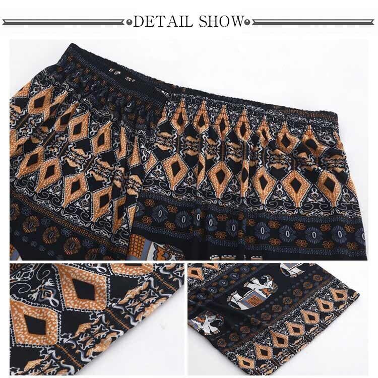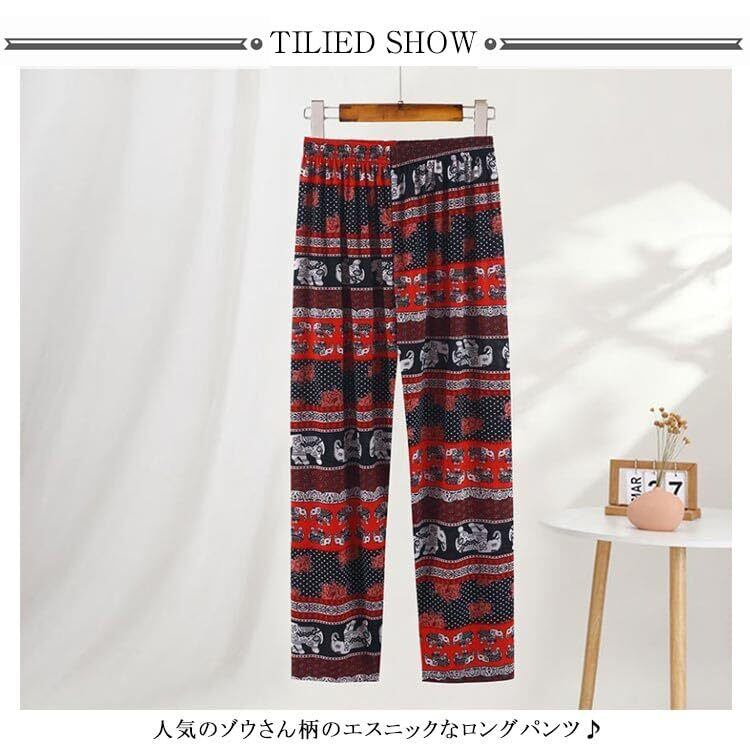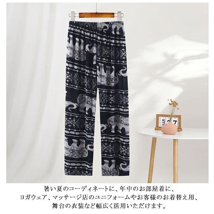 人気のゾウさん柄のエスニックなロングパンツ サラサラの薄手素材は涼しくて締め付けもなく穿き心地最高! ストレッチ抜群でストレスフリー 暑い夏のコーディネートに、年中のお部屋着に、ヨガウェア、マッサージ店のユニフォームやお客様のお着替え用、舞台の衣装など幅広く活用いただけます。