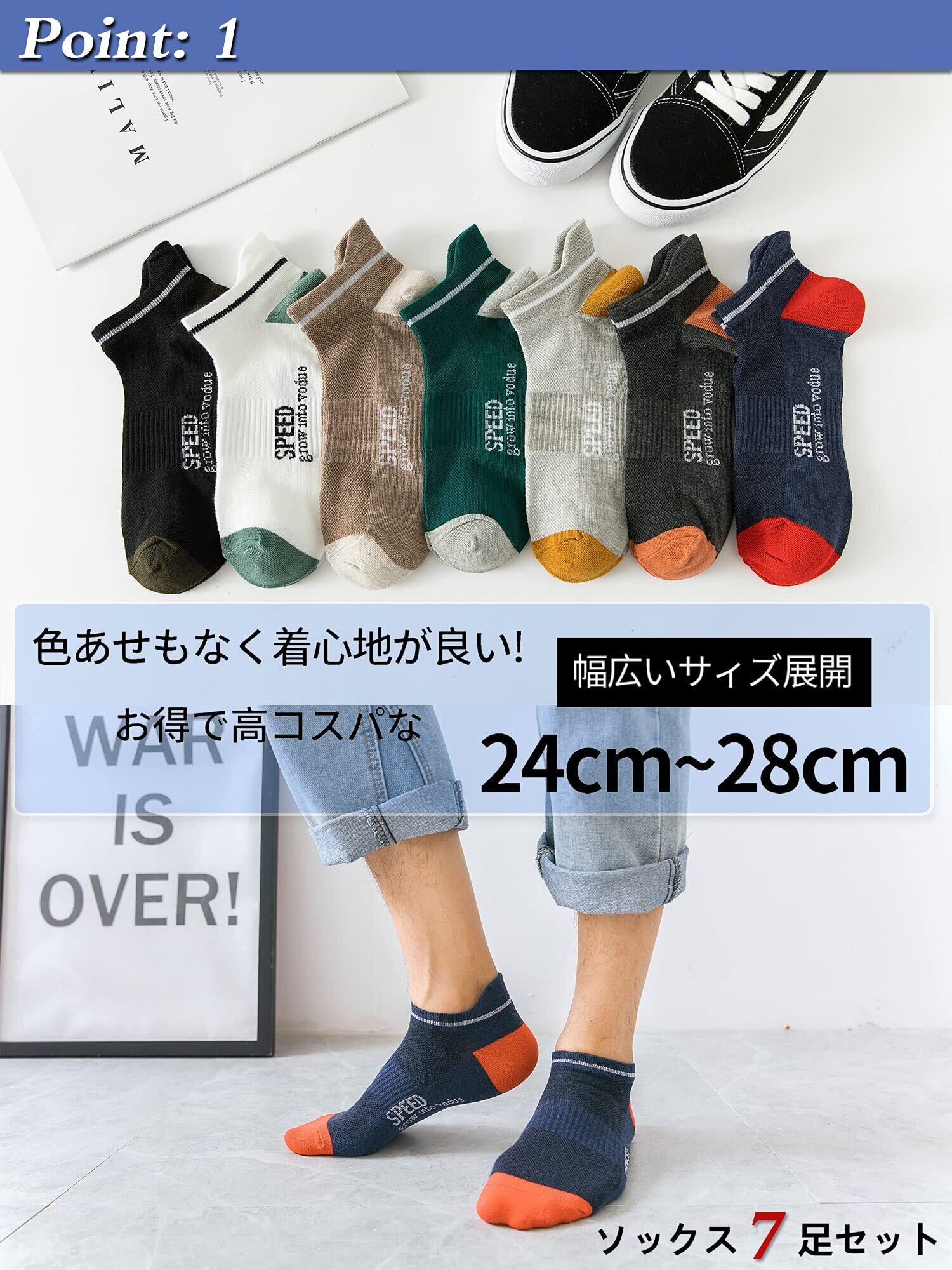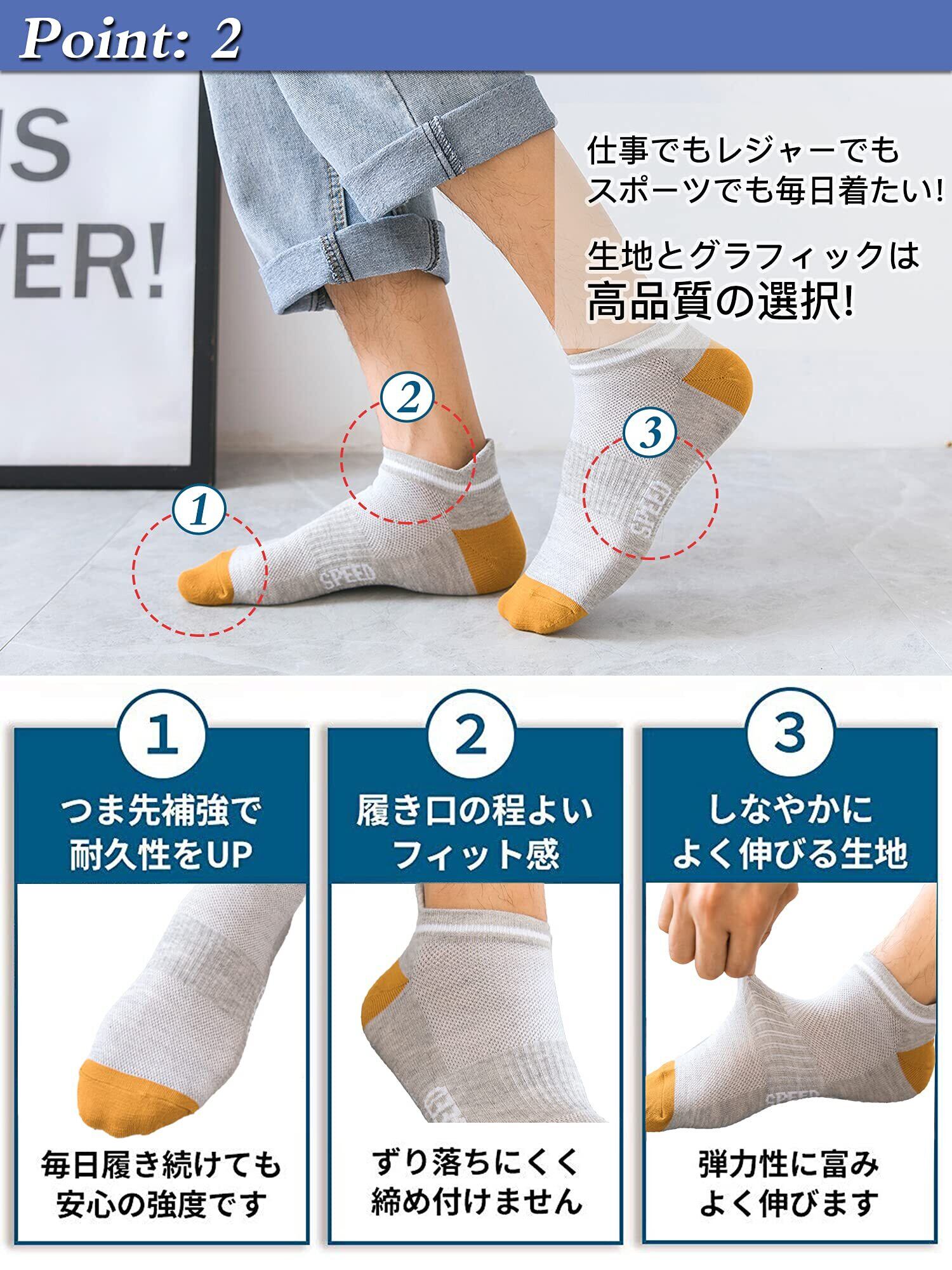 [XCHMYi] 靴下 メンズ ソックス くるぶしソックス 高級綿 通気性 臭わない 抗菌防臭 吸汗速乾 室内 カラフルソックス アウトドアソックス カジュアル 7足 8足 10足セット 四季適用 男女兼用 24-28cm