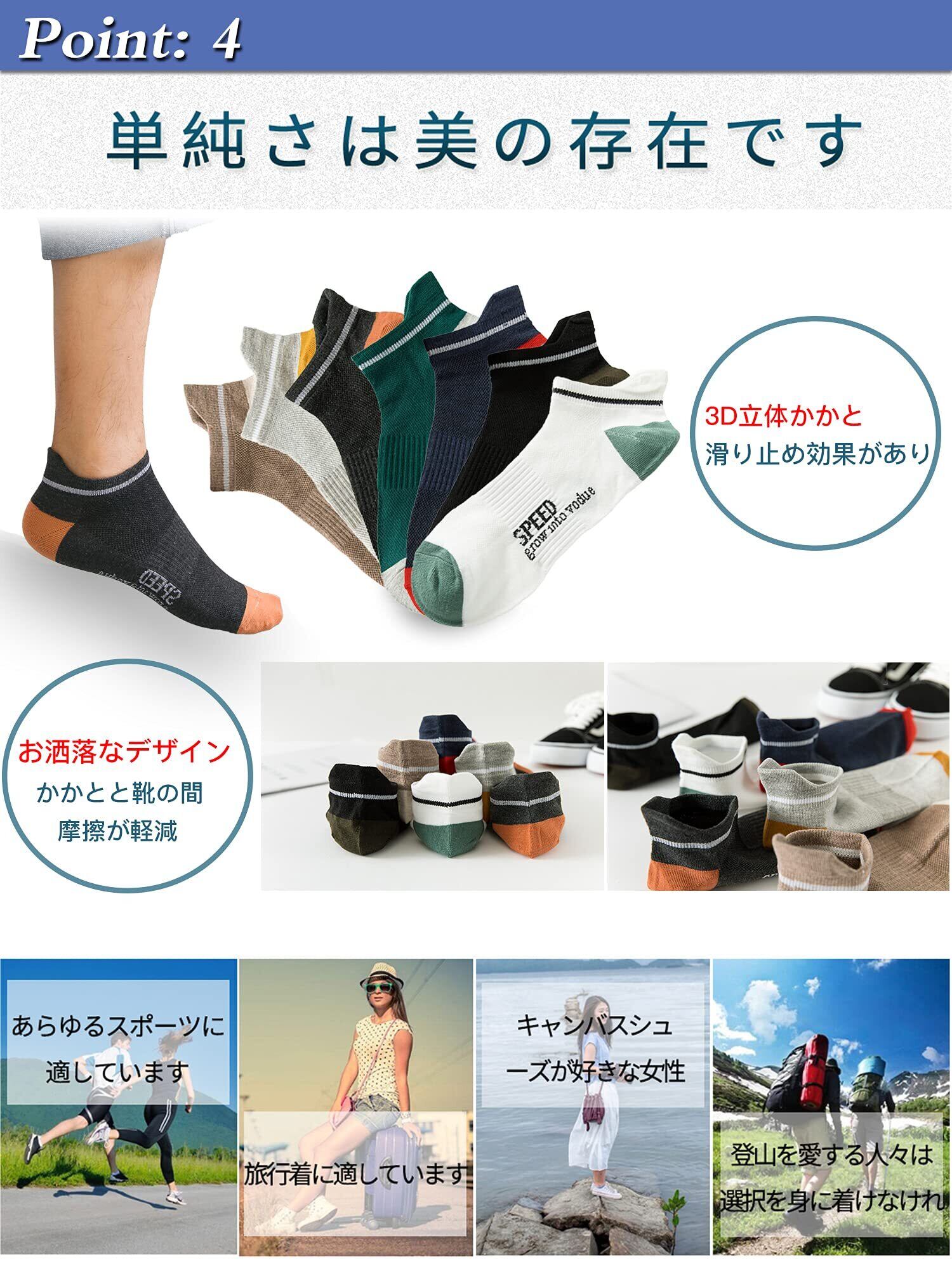 【快適な履き心地】80%コットン+20%スパンデックスの綿混生地で作られ、柔らかく肌に優しい、吸汗速乾で通気性が良い。たくさん歩く日や汗ばむ暑い日でも蒸れずに一日中快適に着用いただけます。