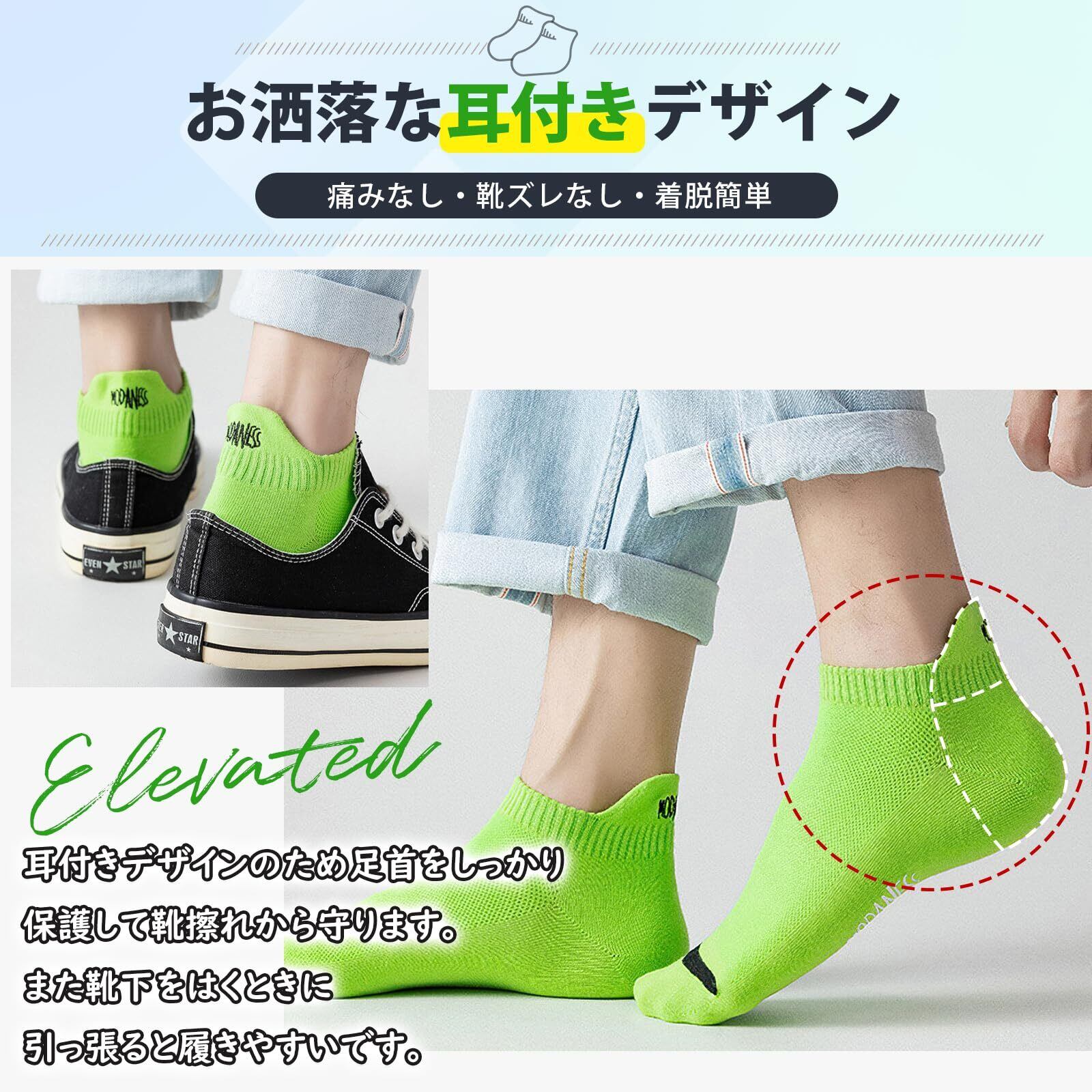 【高品質コットン・快適な履き心地】サイズ:24.0-27.0 cm。80%コットン+20%スパンデックスの混紡素材。柔らかくもしっかりとした履き心地のくるぶし ソックスです!通気性に優れたメッシュ編み仕様で、長時間履いても蒸れず、汗やニオイが気になる方にオスス靴下 メンズです。さらりとした履き心地で一日中快適です。