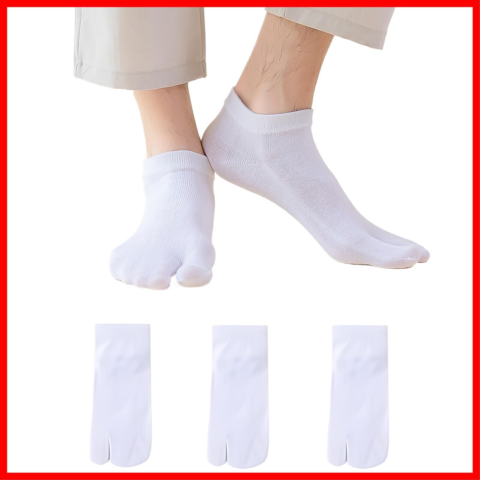 【メンズ 無地ソックス 3足組】このメンズ くるぶし丈 2本指ソックスは、高品質の綿70%生地で作られています。サイズは24.5~27cmで、履き心地が良く、ほとんどの男性の足にフィットします。優れた吸湿発散性で、足をドライに保ち、蒸れや湿気を防ぎます。普段使いからスポーツまで、快適な履き心地を提供します。