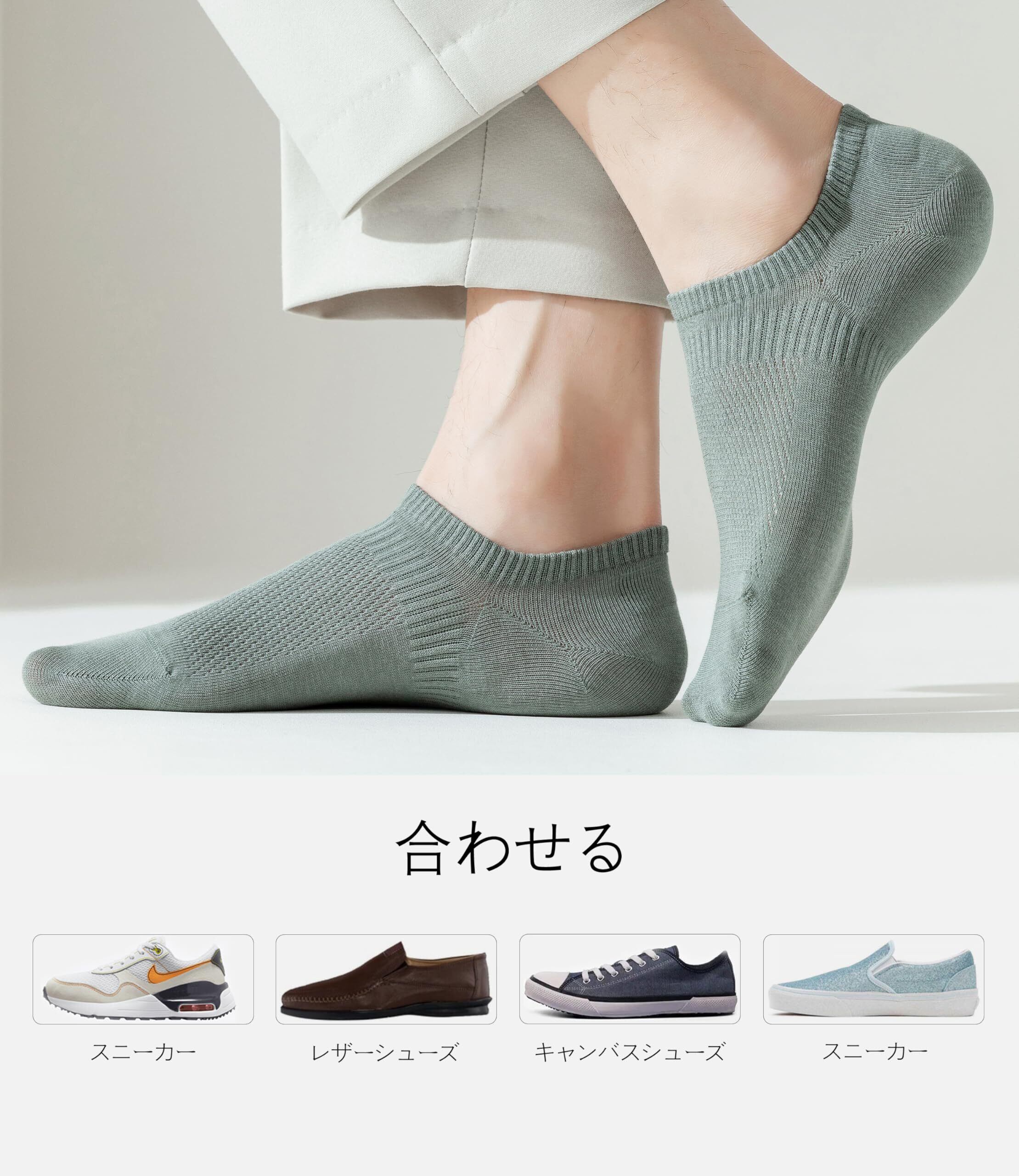 【高級綿95%】: コットン95%生地、高級綿の繊維長35mm以上、毛玉も少なく破れたりもせずなかなか丈夫です、新しい技術の導入、靴下の穴が開きにくいするには。履き口補強、ライクラ生地伸縮性がある、型崩れに強い、締め付けない。肌触りがいい感じ、吸湿性、抗菌防臭機能に優れてます、夏用にの薄いサラサラした肌触りの生地です