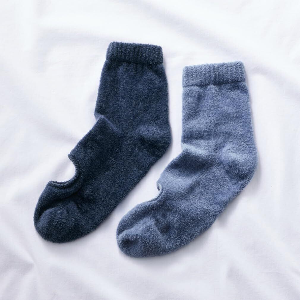 体温に合わせて調節できる、つま先開閉タイプの寝る時用靴下。くつろぎ&おやすみ時間をほっこりやさしく包み込みます。