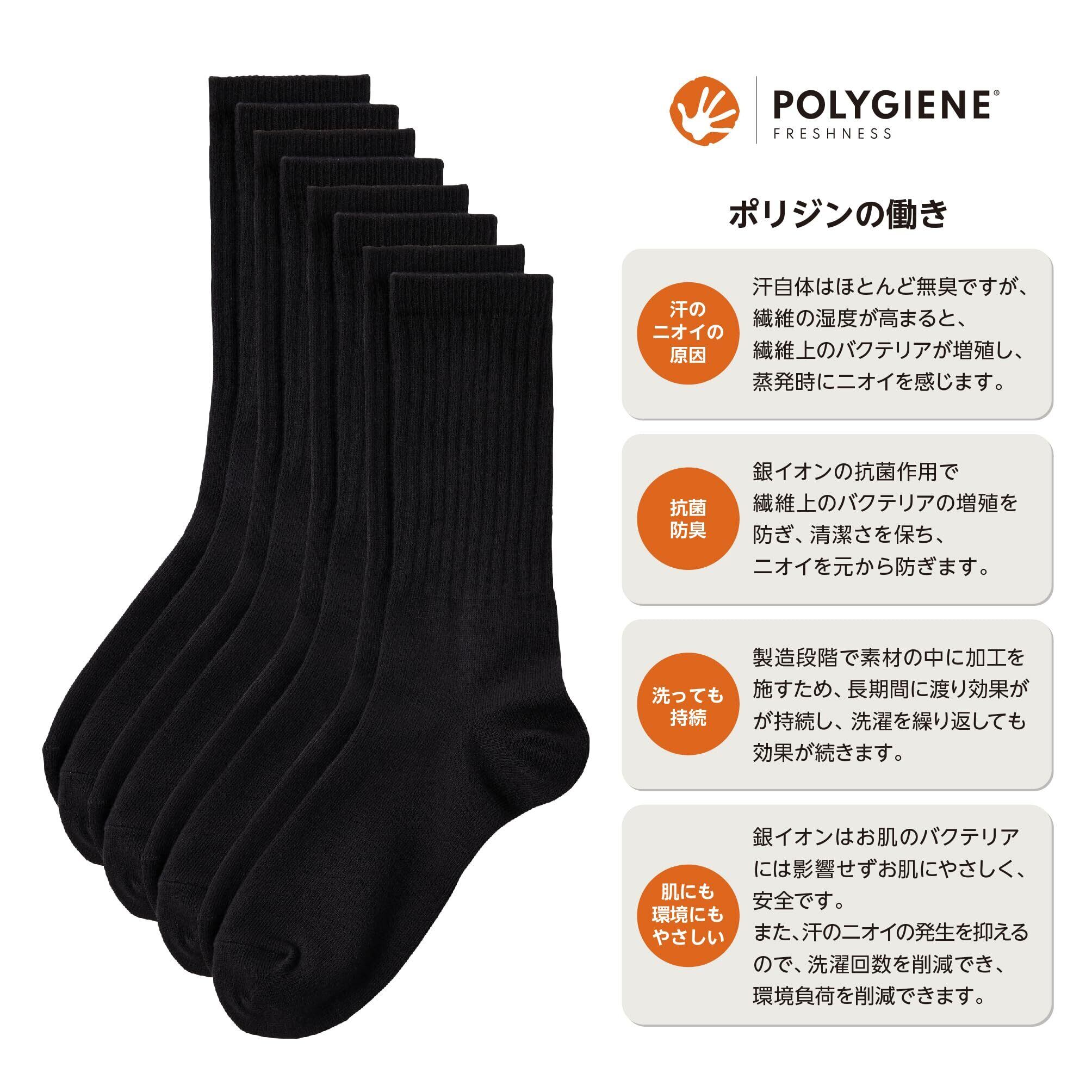 [ Essentials] 4足セット 無地ソックス BCIコットン ポリジン加工 抗菌消臭 メンズ ブラック 25.0-27.0 cm