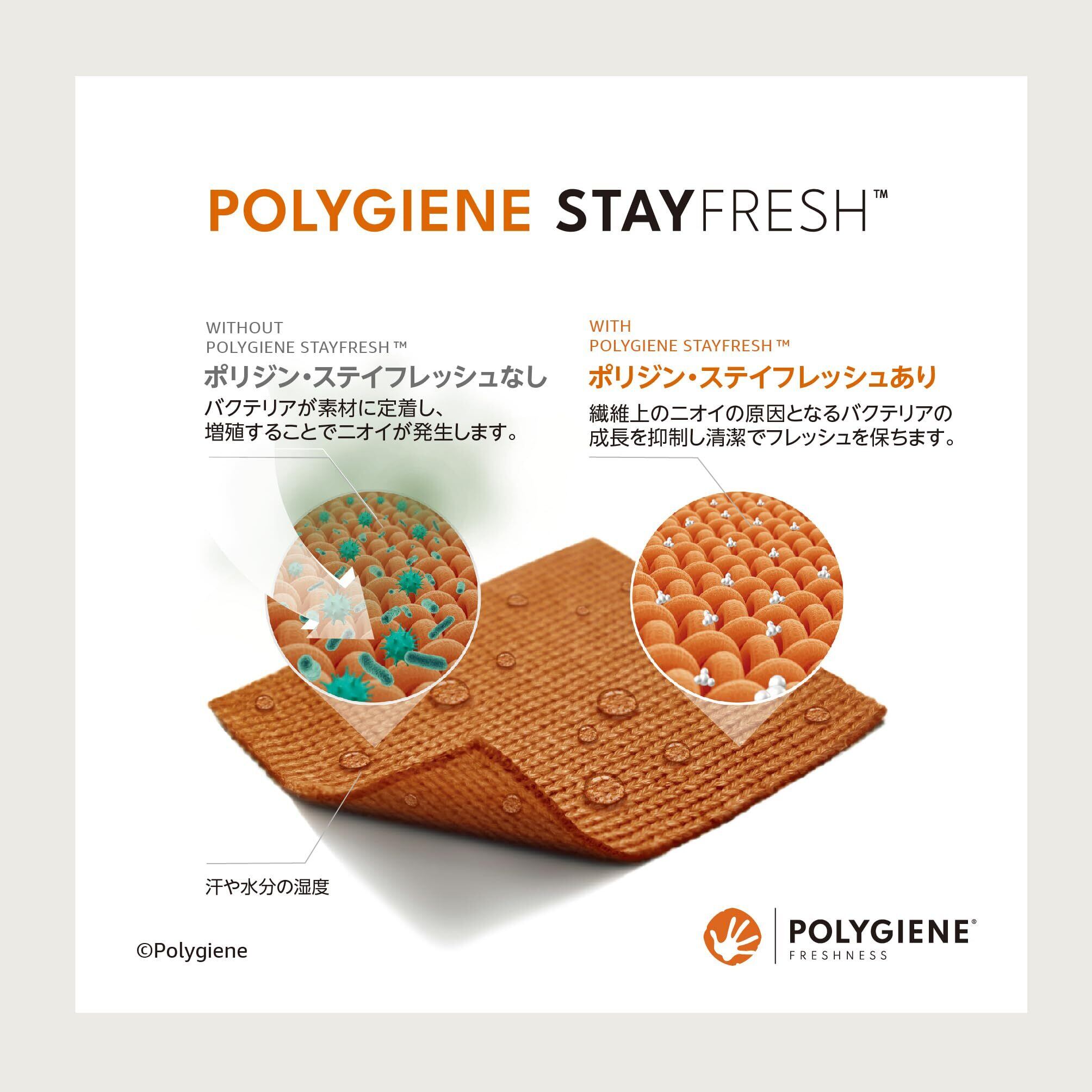 BCIが定める基準に則って栽培されたコットンを使用。業界高水準の抗菌テクノロジーにより、ニオイの原因となるバクテリアの増殖を抑制するポリジン加工を使用したソックス