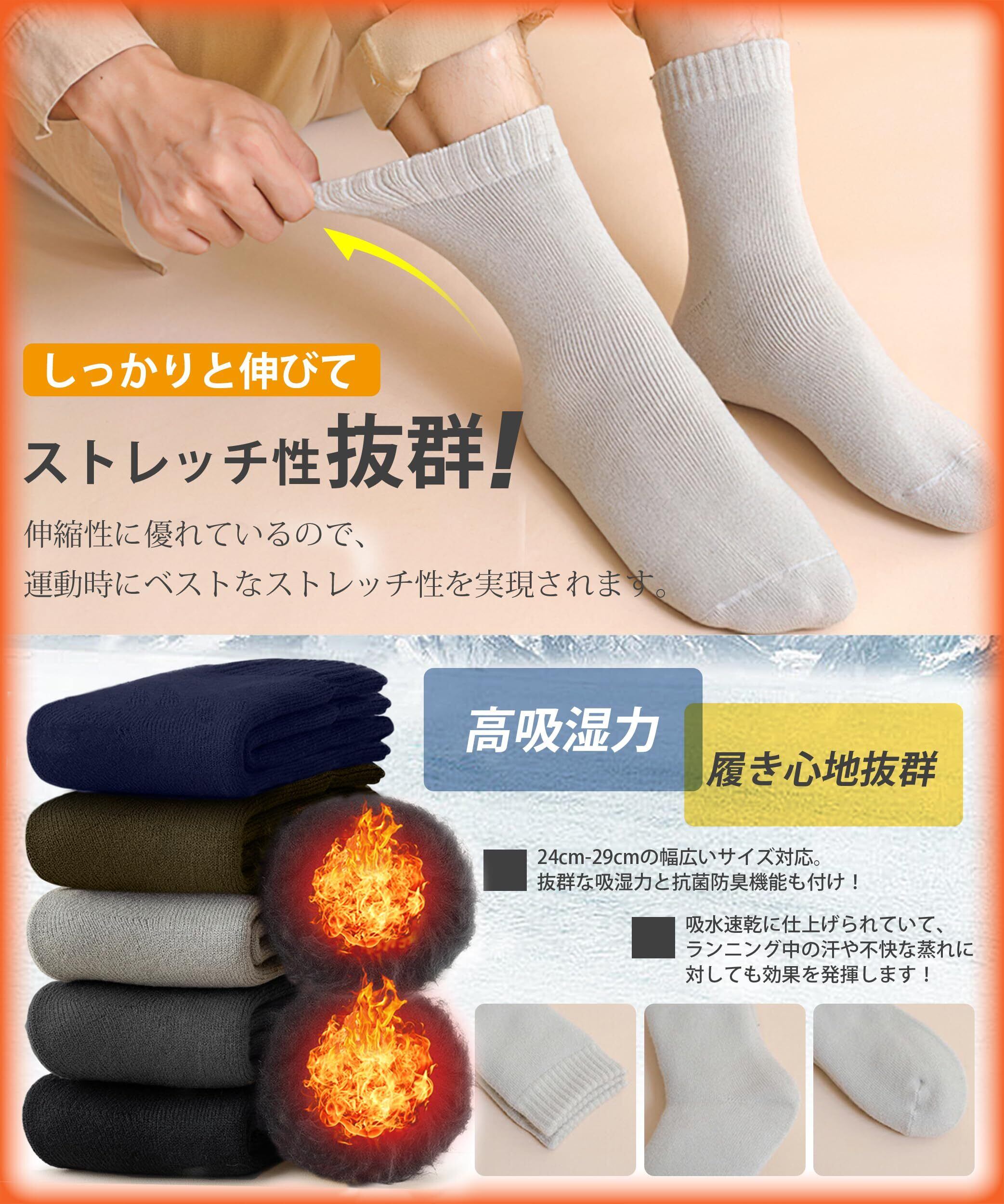 靴下 メンズ ソックス 冬 【履いた瞬間から速暖・抗寒力max】【極厚雲感裏パイル・極暖38℃恒温】 ウールソックス 防寒靴下 360°蓄熱 冷え性対策 厚手 防寒 保温 消臭 耐久性 伸縮性 室内 アウトドア 登山 キャンプ 25-29㎝ 3足-5足セット