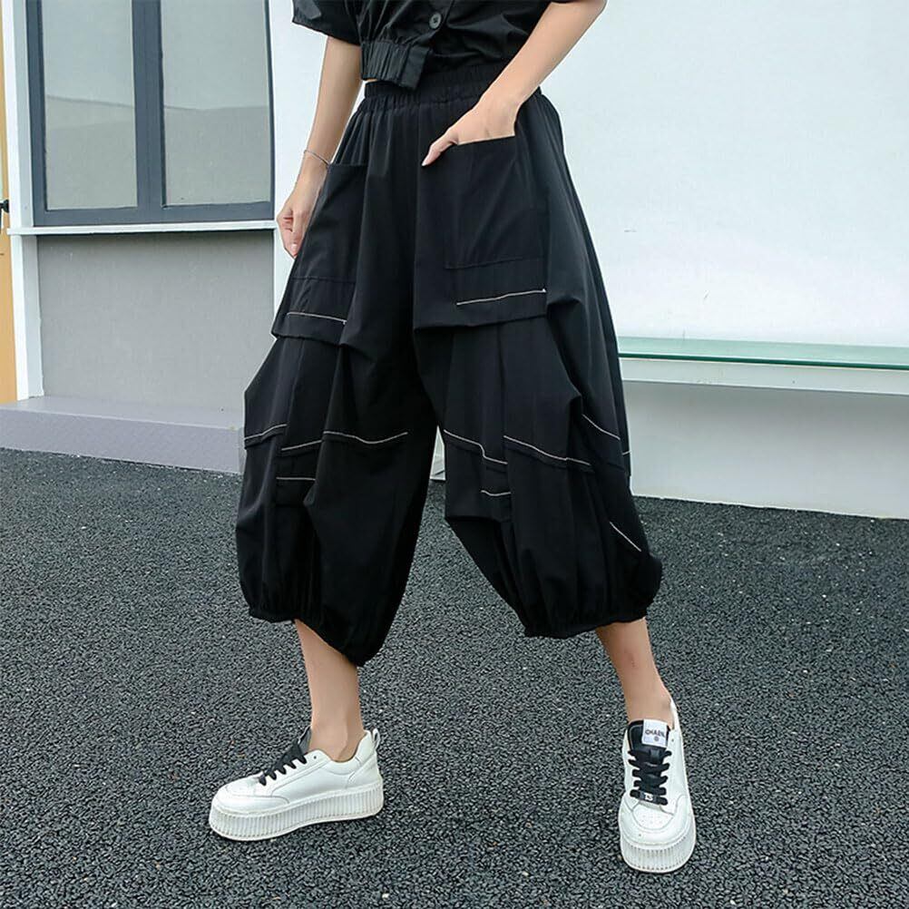 【在庫処分】[モリノー] 裾ゴム入り ワイドパンツ 七分丈 サルエル ウエストゴム ポケット付き レディース メンズ ゆったり 薄手 クロップトパンツ モード系 ストリート 夏 | Cherry Blossoms