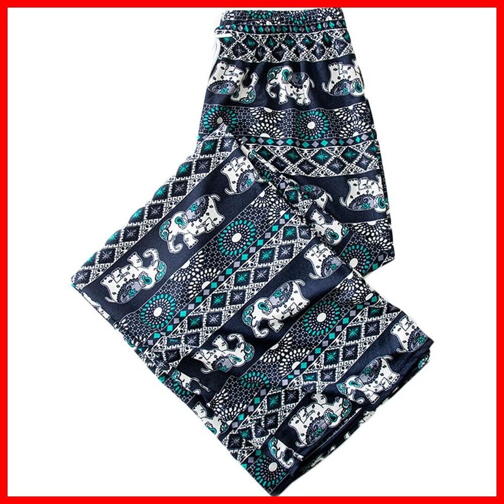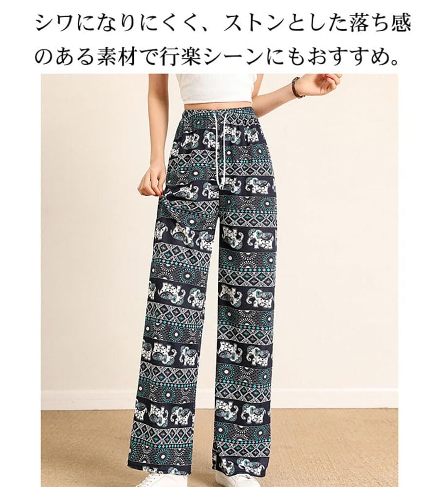 [Celetree] ワイドパンツ ロングパンツ レディース ウエストゴム 象 総柄 エスニック アジアン 薄手 涼しい 春 夏