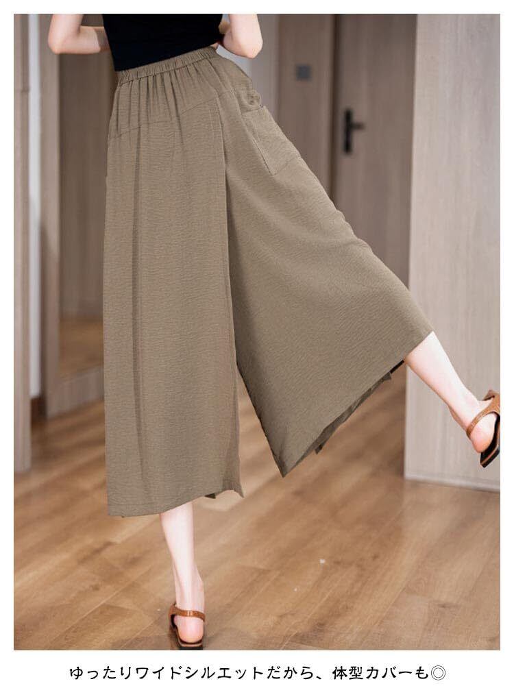 【新着商品】ガウチョパンツ スカーチョ レディース 8分丈 冷感 アイスシルク キュロット ワイドパンツ ハイウエスト 無地 薄手 通気性 吸汗速乾 涼しい ひんやり スカートパンツ カジュアル 体型カバー 大きいサイズ 春夏秋 | Cherry Blossoms