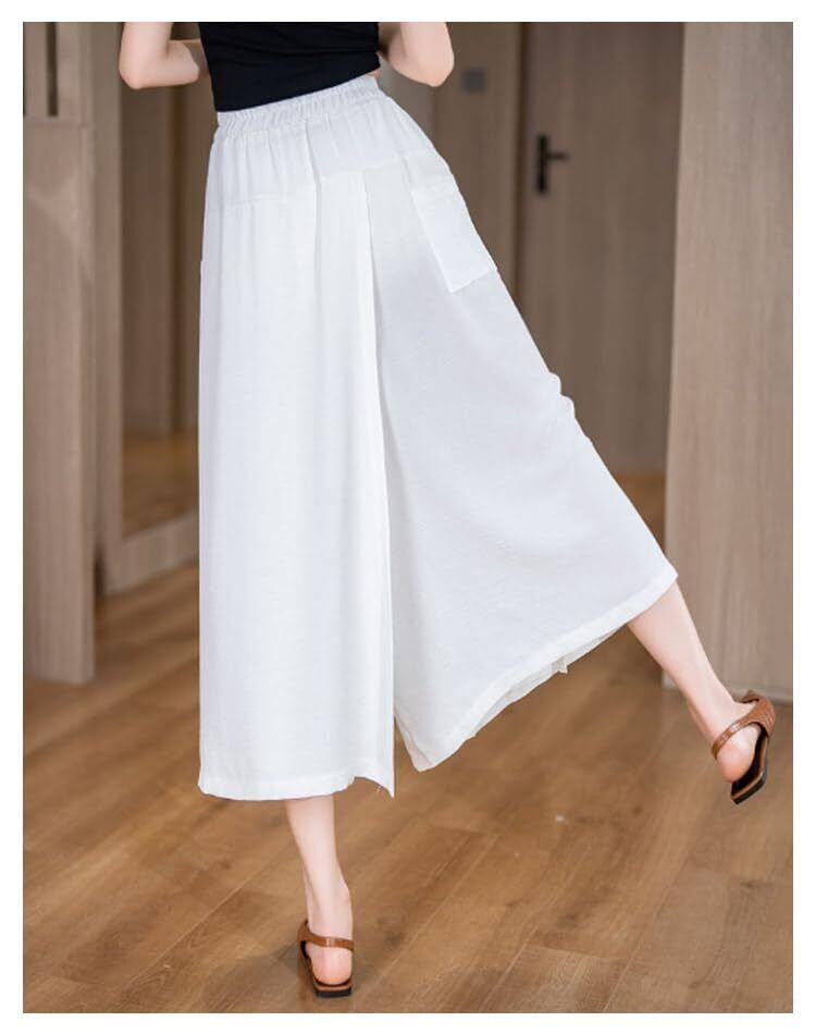 スカートのようなズボンは着た瞬間、下半身のぜい肉を隠してやせて見えるんです、優雅で便利でズボンよりルージュして楽です!