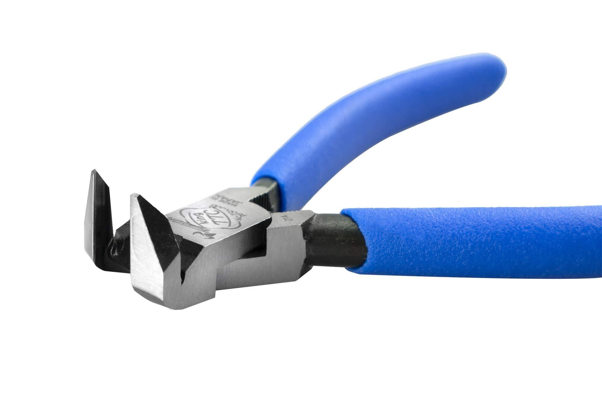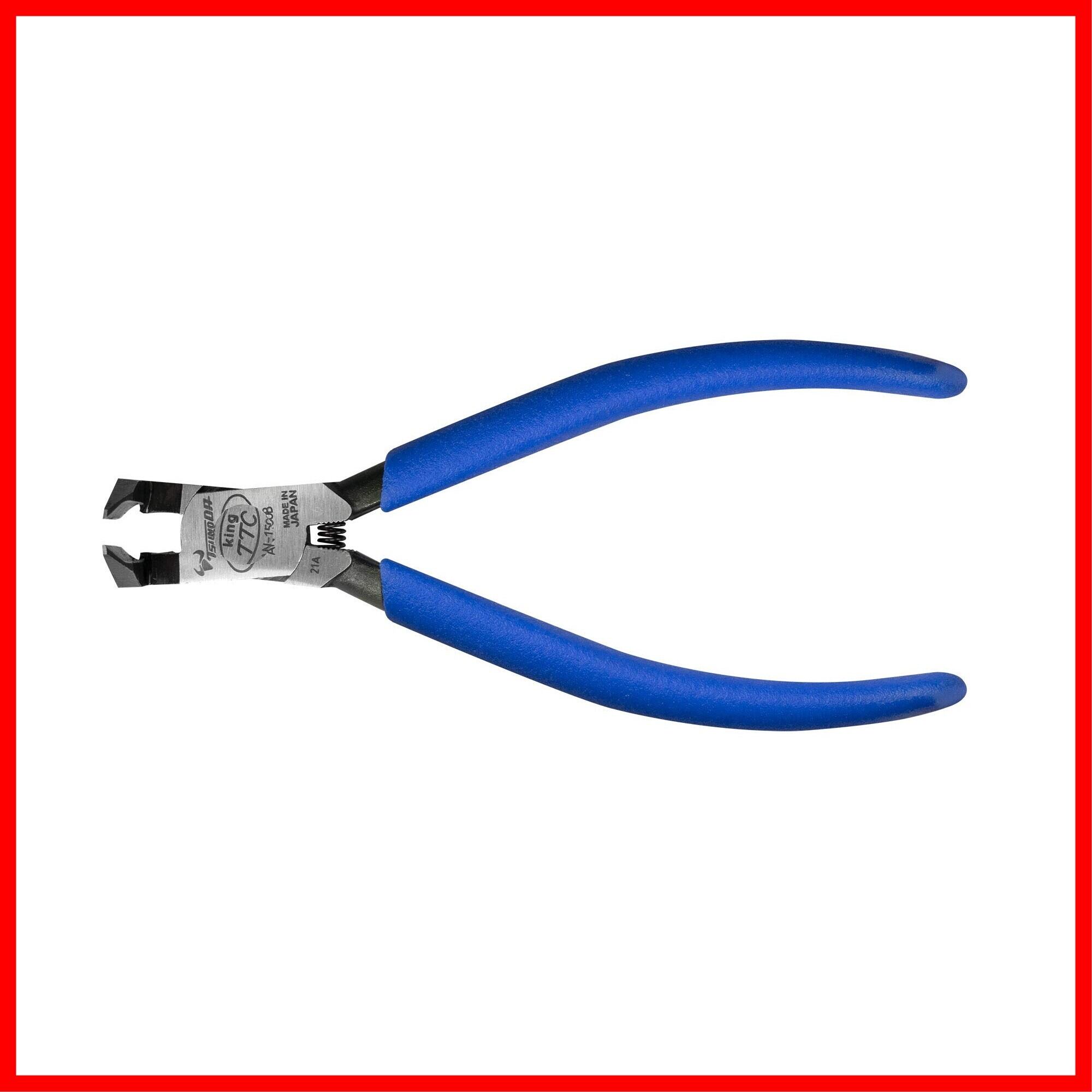 通常のニッパーでは入らない奥まった箇所や狭所作業、障壁を交わしての切断、垂直面の切断、窓際や平面の突起物の面切りに最適な先端が90度に曲がったプラスチックニッパー。フラット刃で切断面のバリが少なくキレイに仕上がります。光造形の3Dプリンターサポート材の除去やABS樹脂の切断にも。